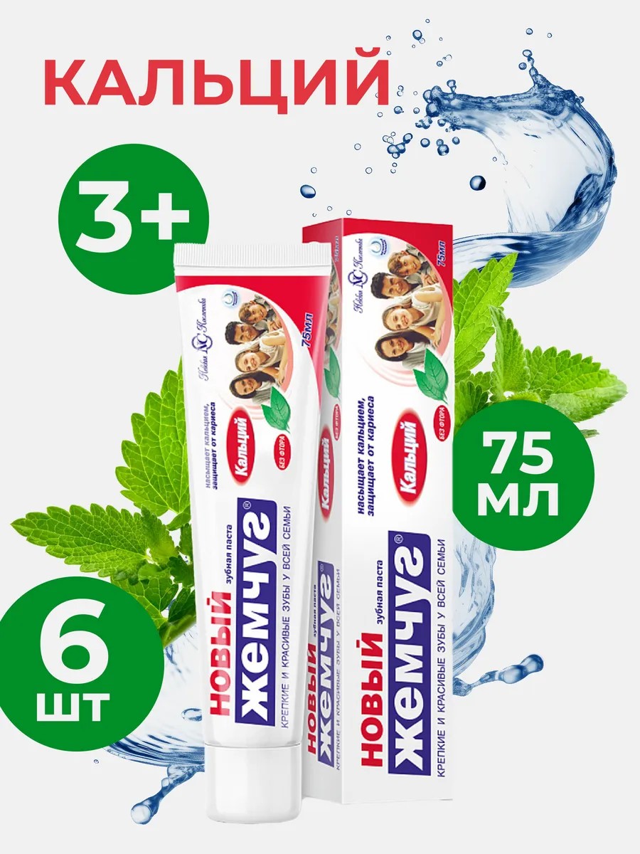 Новый жемчуг Зубная паста Кальций 75мл (6шт в наборе)