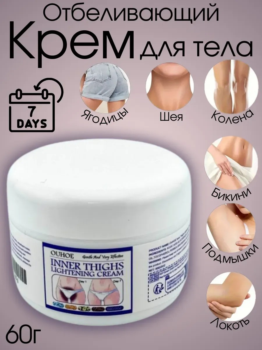 Крем для отбеливания кожи между ног подходит для ежедневного использования на чувствительных участках тела. Идеален как крем для отбеливания интимных зон, отбеливающий крем для подмышек, осветляющий крем для зоны бикини, отбеливающий крем от потемнений между бедер. Эффективно борется с потемнением кожи, вызванным трением, гормональными изменениями, возрастом или воздействием солнца. Подходит для осветления подмышек, локтей, коленей, зоны под грудью, внутренней стороны бедер и ягодиц. Крем увлажняет, питает и выравнивает тон кожи. Быстро впитывается, не оставляет липкости. Результат заметен уже через несколько применений. Подходит для всех типов кожи, в том числе для чувствительной. Используется как крем от потемнений кожи, крем от тёмных пятен, отбеливающий крем для тела, крем для осветления кожи, крем для зоны бикини и подмышек, интимный осветляющий крем, крем против тёмной кожи. Рекомендуется наносить на очищенную кожу утром и вечером.