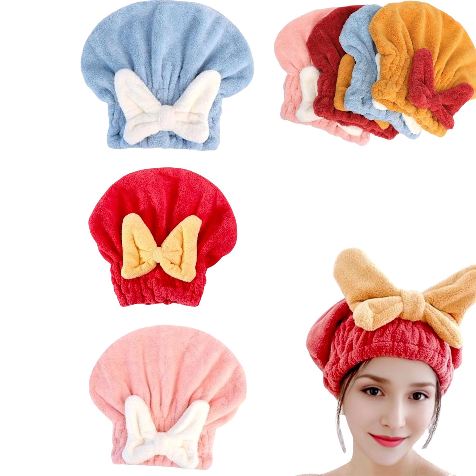 New Super Absorbent Hair Towel Wrap for Wet Hair, Ultra Absorbent Hair Quick Drying Towel, Soft Absorbent Quick Drying Cap with Bow-Knot, Make Your Hair Smoother and shinier (3 PCS-02)