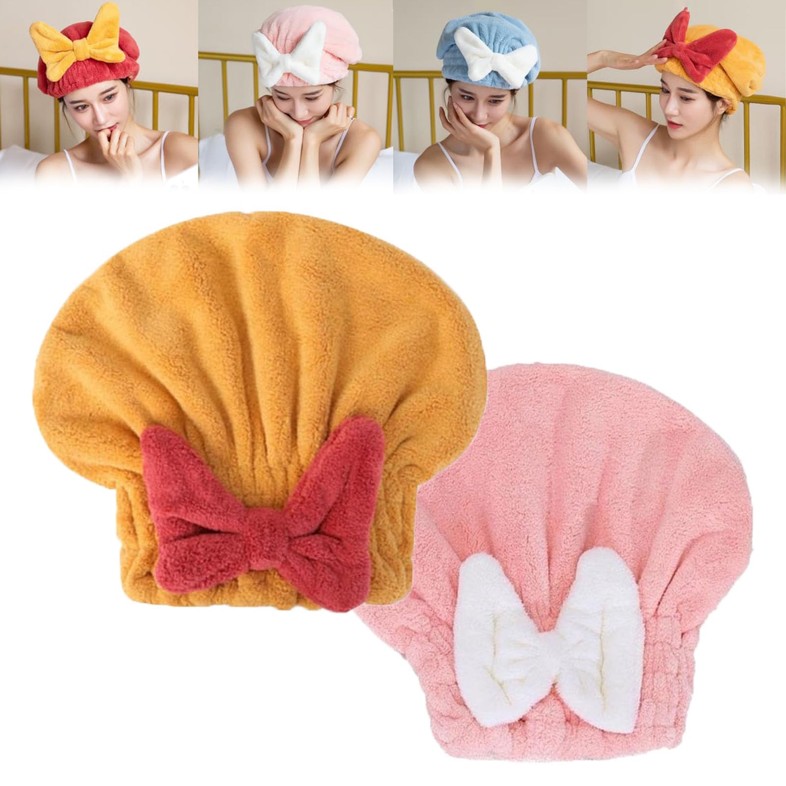 New Super Absorbent Hair Towel Wrap for Wet Hair, Wet Hair Towel Bag, Shower Cap Microfiber Bow Towel Bag for Women with Long & Thick Hair (Pink+Yellow)