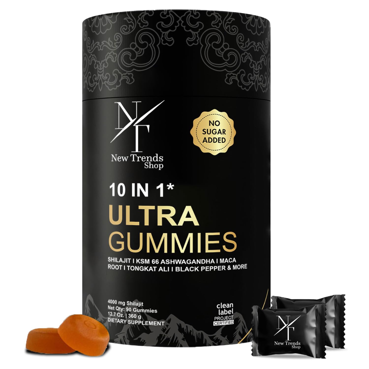 Experience the power of ancient wellness in a modern form with New Trends Shop 10-in-1 Ultra Shilajit Gummies. Each serving delivers a potent 4000 mg blend of pure Shilajit, Tongkat Ali, Maca Root, and 75 Fulvic Acid, designed to support energy, stamina, and overall vitality. These sugar-free, vegan-friendly gummies are packed with 85 trace minerals, making them a convenient and delicious way to nourish your body and mind. Whether you're looking to boost performance, balance hormones, or enhance daily wellness, this 90-count pack offers a clean, plant-based solution backed by nature and crafted for modern lifestyles.- Delicious Convenient – No more bitter powders or messy tinctures. Just pop a tasty gummy and go! 90-count bottle provides a full 45-day supply. Brain Immune Boost – With 85 trace minerals and fulvic acid, these gummies support cognitive clarity, immune defense, and cellular health. ? Natural Energy Hormonal Support – Adaptogenic herbs help balance hormones, support endurance, focus, and recovery. Sugar-Free Vegan Friendly – Enjoy clean, plant-based energy with zero sugar, artificial sweeteners, or animal-derived ingredients. Perfect for keto, vegan, and low-carb lifestyles. 4000mg Ultra-Potent Shilajit Blend – Packed with Pure Shilajit, Tongkat Ali, Maca Root, and 75 Fulvic Acid for maximum vitality, stamina, and performance.