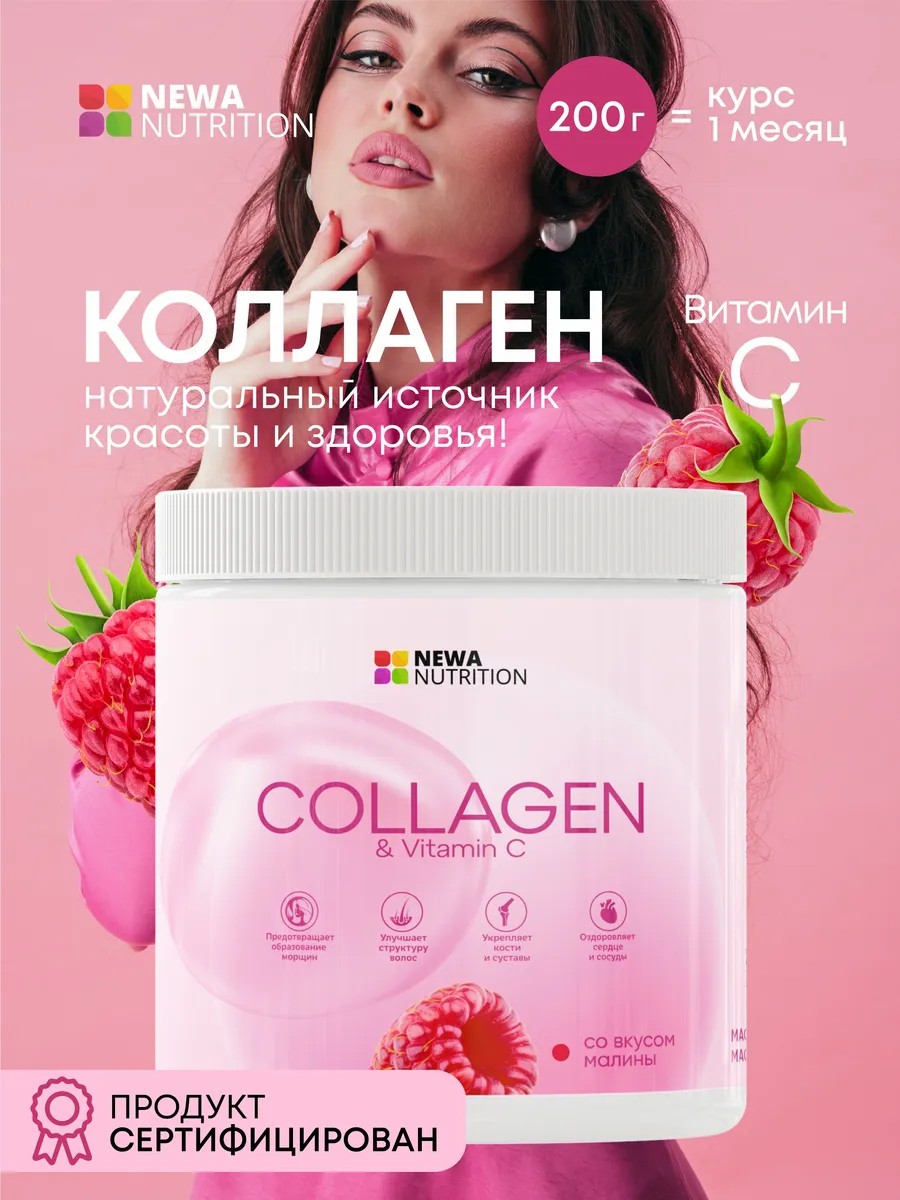 Натуральный гидролизованный пептидный говяжий коллаген 1 и 3 типа для приема внутрь в сочетании с аскорбиновой кислотой (витамином С ) для полного усвоения. Питьевой коллаген принимают для красивой кожи, волос, ногтей, здоровья костей, суставов и связок. Уменьшает морщины, восстанавливает эластичность кожи, тормозит процессы старения. Улучшает внешние проявления целлюлита. Обеспечивает упругость и эластичность тканей, кожи, хрящей, суставов, костей и слизистых. При повышенных нагрузках и с возрастом количество коллагена уменьшается, поэтому для поддержки здоровья и красоты суставов и тканей нужно получать коллаген из вне. Регулярное употребления гидролизованного говяжьего коллагена с витамином С способствует укреплению суставов, обновлению хрящевой ткани, профилактике артроза. Коллаген порошок для приема внутрь улучшает состояние лица, кожи, уменьшает образование морщин, устраняет ее дряблость и сухость.Питьевой пептидный коллаген действует сразу в 3 направлениях - улучшает внешнее состояние здоровья кожи, состояние костей, эластичность суставов. Для лучшей усвояемости коллагена, в состав бада, помимо пептидов, добавлена аскорбиновая кислота. Спортпит с добавлением коллагена (collagen) способствует уменьшению морщин и восстановлению красоты и здоровья кожи, волос и ногтей, восстановлению упругости кожи и ее омоложению, уменьшению проявления признаков целлюлита и оздоровлению костей, суставов и связок. Полезный пептидный напиток можно пить взрослым мужчинам и женщинам, подросткам - парням и девушкам и пожилым людям. Особенно показана это биологически - активная добавка для спортсменов во время интенсивных спортивных тренировок и людям, страдающим болезнями суставов, типа артроза, артрита и полиартрита. Витаминный препарат поможет вам укрепить кости, избавиться от сухости и дряблости кожи и вернуть здоровье хрящам, суставам и связкам. Бьюти - препарат предотвращает выпадение волос, возвращая им здоровьe, силу и блеск. Он поможет вам избавиться от морщин на лице и уменьшить проявления целлюлита на теле, вернув коже эластичность, способствует повышению упругости кожи и оказывает полезное действие на хрящевую ткань. Также препарат следует принимать для укрепления ногтей и костей. Бад имеет приятные вкусовые свойства и обладает отличным вкусом малины. Его следует принимать внутрь один раз в день в целях профилактики или 2 раза в день при заболеваниях суставов. Вкусный и полезный напиток поможет вам сохранить здоровье суставов, связок и костей и красоту и молодость кожи. Он способствует снижению износа хрящевой ткани и поддержке здоровых связок ног и рук. В одной банке 200 грамм сухого порошка. Одна упаковка, в форме баночки рассчитана на один месяц приема beauty - препарата. Биологические добавки в форме порошка не является лекарством. Препарат одинаково благотворно действует и на женский, и на мужской организм!