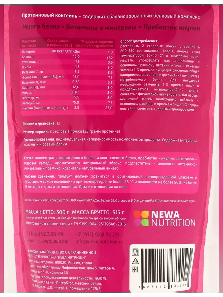 | Полное наименование товара | Протеиновый коктейль с яблочным вкусом |