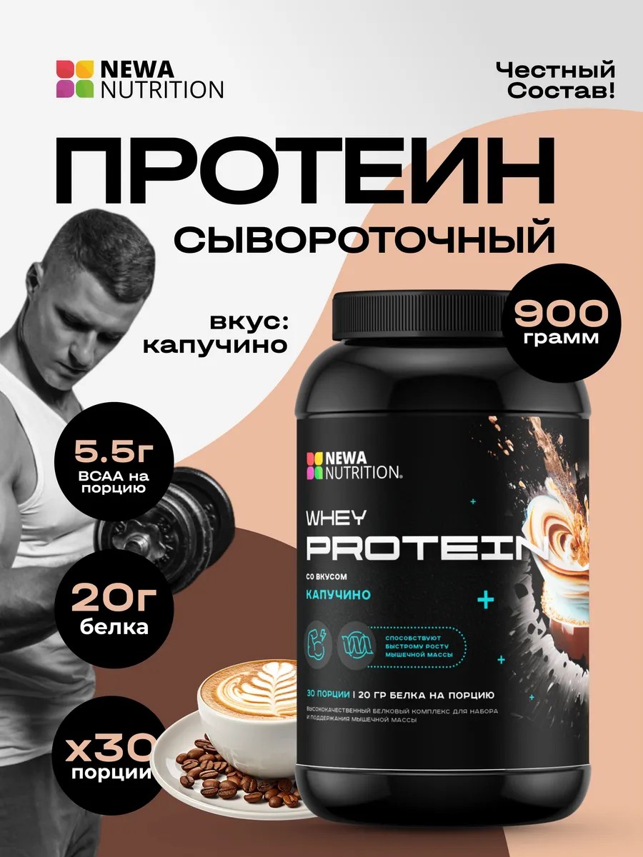 Сывороточный протеин ( Whey Protein) вкус капучино от Newa Nutrition содержит высококачественный сывороточный белок, полноценный по своему аминокислотному составу, с максимальной усвояемостью, а также все незаменимые аминокислоты, необходимые для роста мышечной ткани. В банке 30 порций - 900 гр сухой смеси.