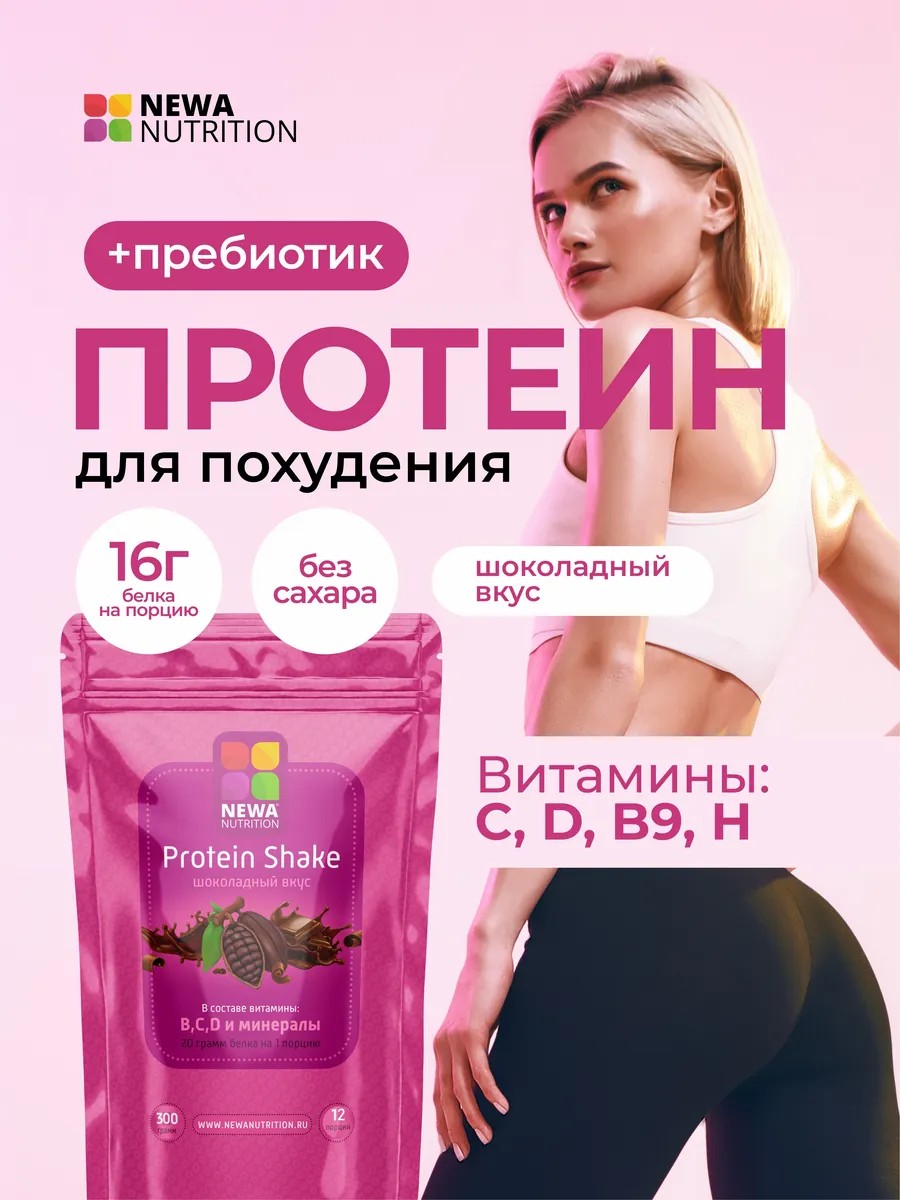 Newa Nutrition Protein contains a balanced, high-quality protein complex, as well as vitamins, minerals, prebiotics, and dietary fiber specifically for the female body. No added sugar. The protein shake is delicious, thick, not sweet, and very satiating. The package contains 350 grams. If you want to lose weight, then protein should be consumed as a dinner replacement. If you want to increase the amount of protein in your diet or build muscle mass, then you should take additional protein between meals.