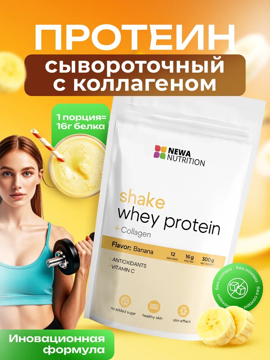 Протеин сывороточный с коллагеном для женщин, банан