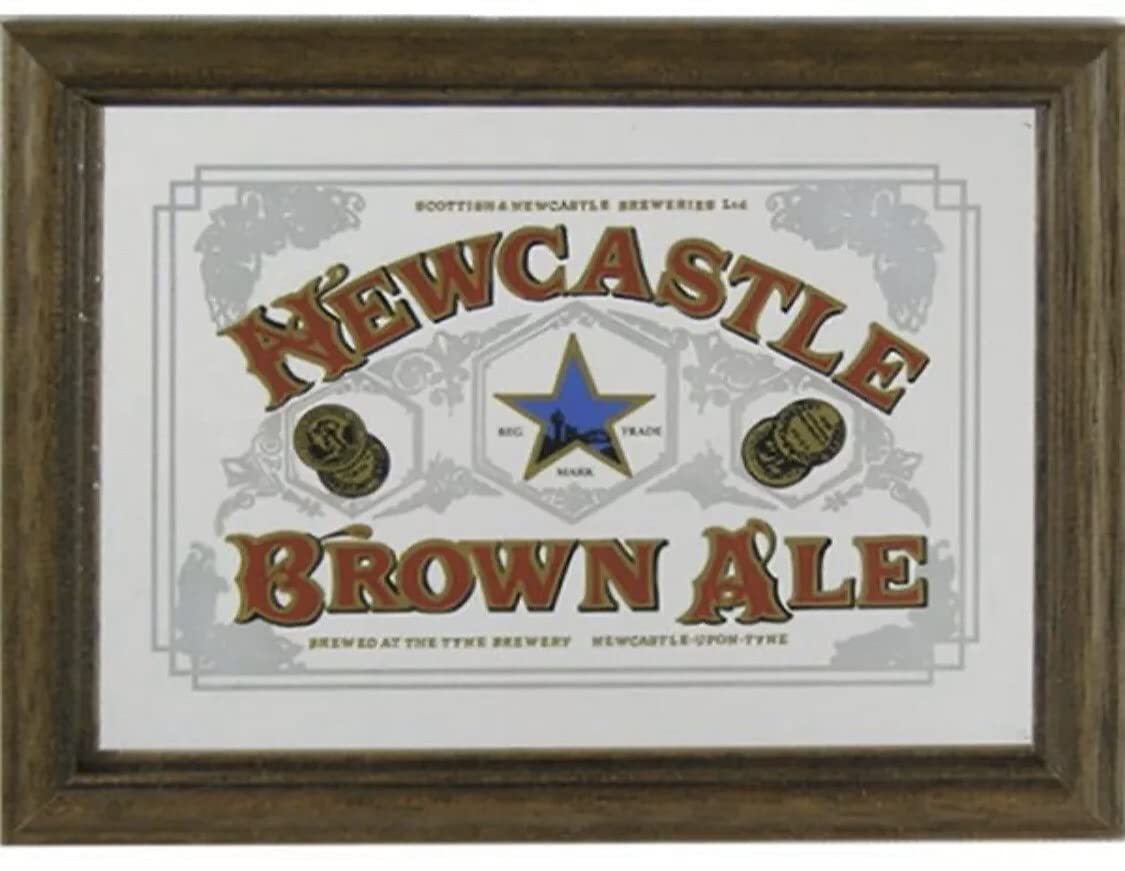 Printed Glass. Wooden Frame. Bar Mirror. Pub Mirror. Small Mirror. Newcastle Brown Ale.