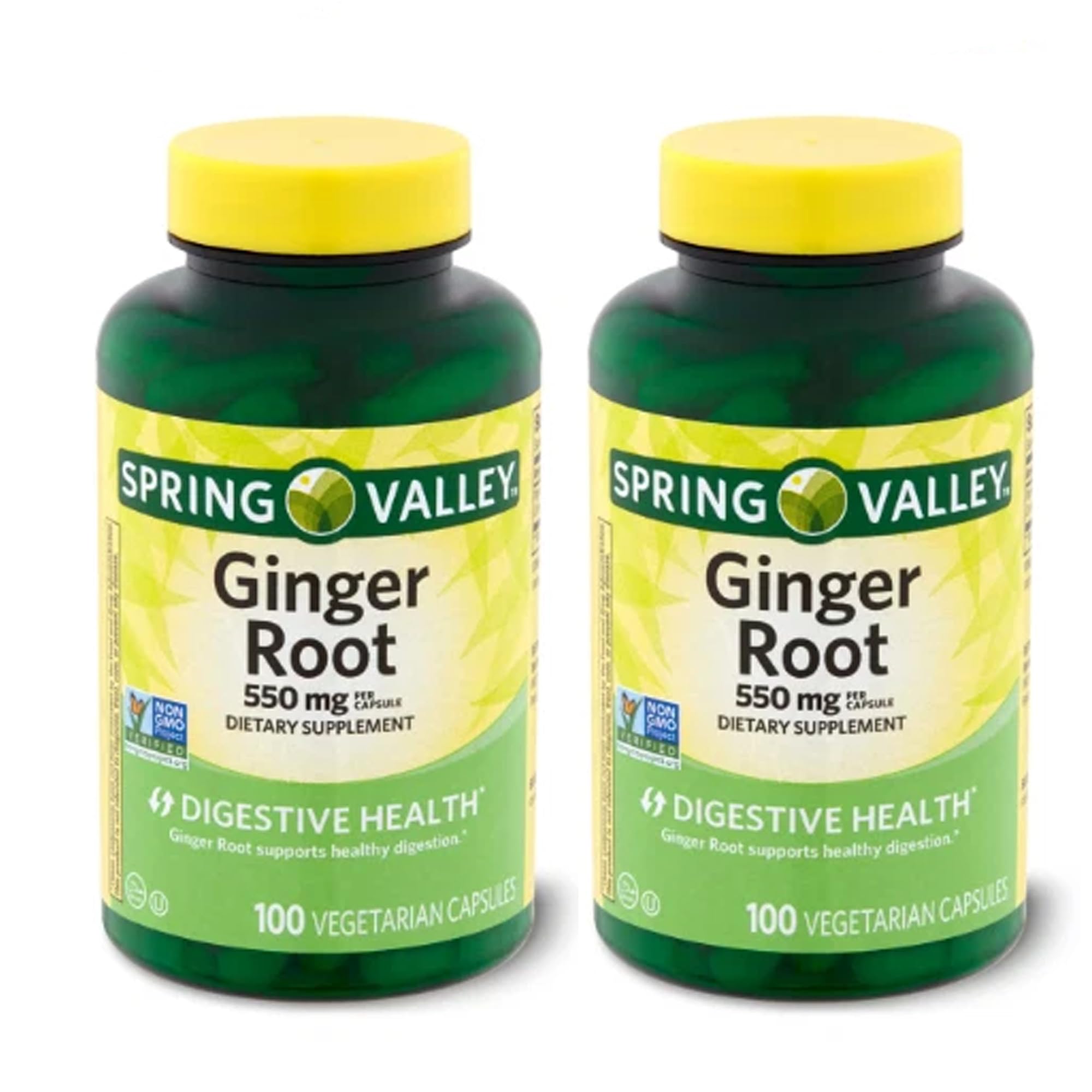 NEWCHEERS Spring Valley Ginger Root Capsules 550 mg 100-Count Pack of 2