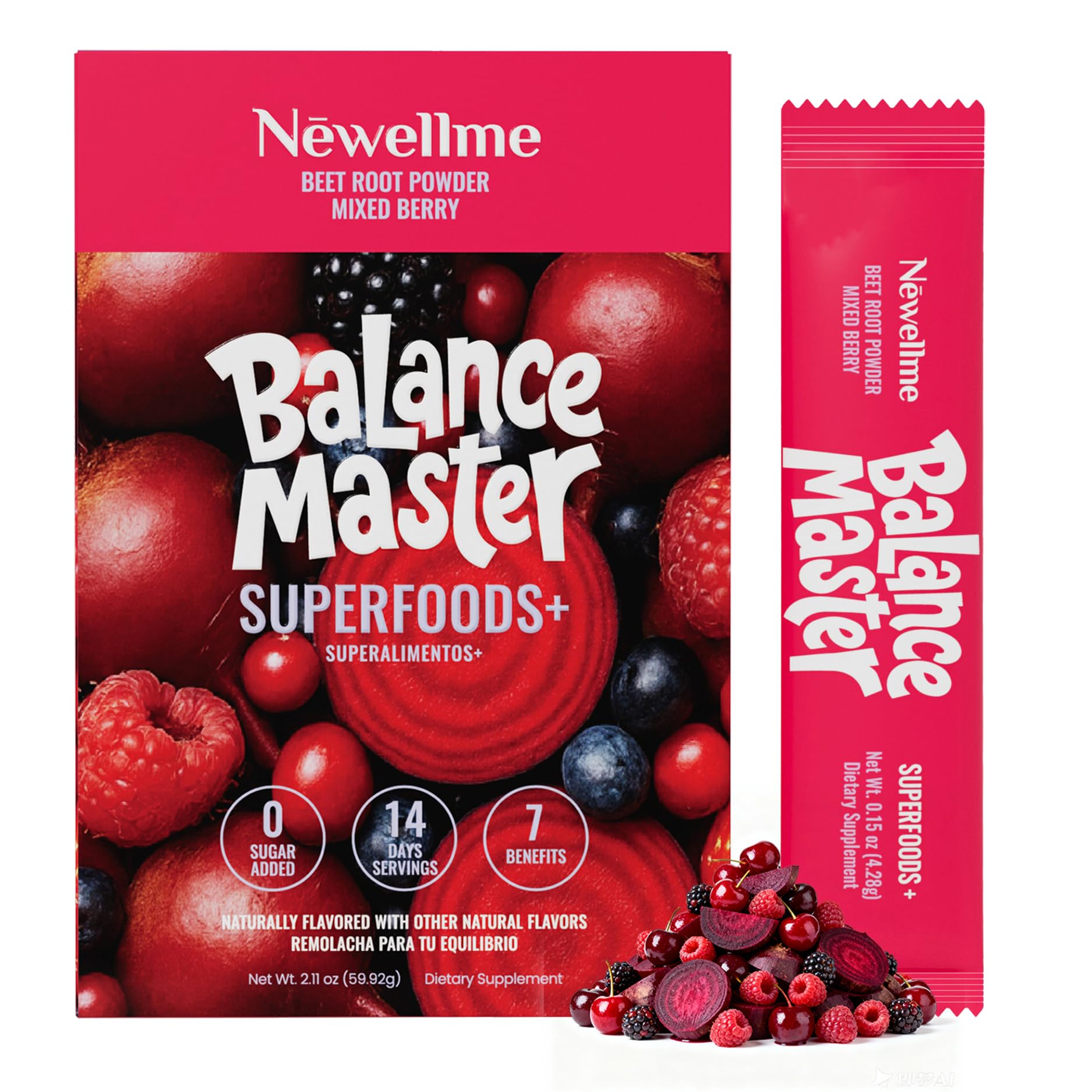 NEWELLME Organic Super Reds Beetroot Powder Nitric Oxide & Blood Pressure Support Heart & Circulation Steady Energy Sugar Free Non-GMO Grape Seed Polyphenols 14 Sachets Berry Flavor 14 Daily Packs