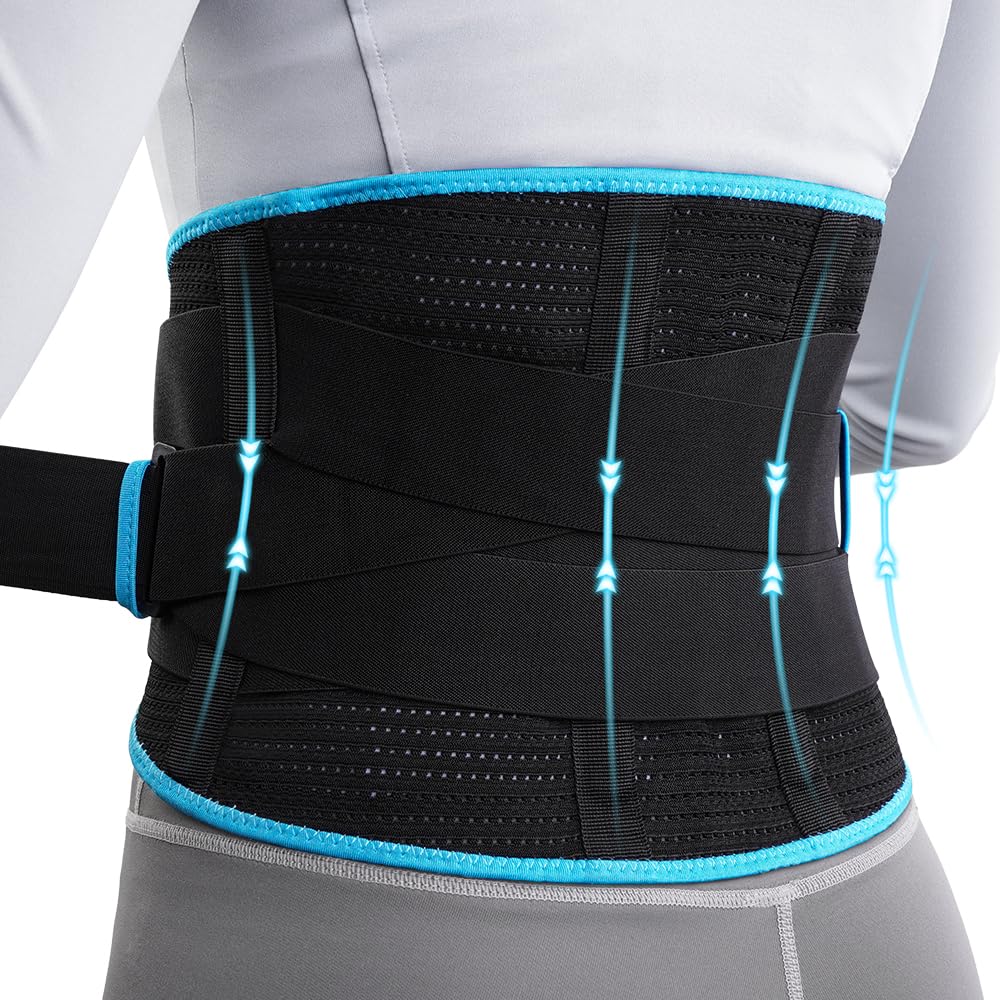 High quality - made from a piece of breathable neoprene with double seams for permanent quality, this back bandage is certain for men and women to pass the test of the time and will not restrict them.Maximum comfort - our back bandages for pain in the lower back are particularly comfortable.The back bandage for women and men reduces the risk of injury, offers stability, high flexibility and a safe hold for all types of activities.Adjustable pressure - the back corrector for women and men has an integrated double -train system that enables them to regulate the circumferential pressure around the body as they want for the back support for women with pain in the lower back area.Back support for men and women - Experience the relief of pain in the lower back area with our support belt for the lower back.This lumbar support is equipped with 4 support strips that optimally support the back of women and men.Best lumbar support - our back support belt for men and women reduces the pressure on intervertebral discs, nerves, muscles and ligaments.The medical quality sciatica pain relief clip is suitable for herniated disc back bracket pain relief and many other complaints.