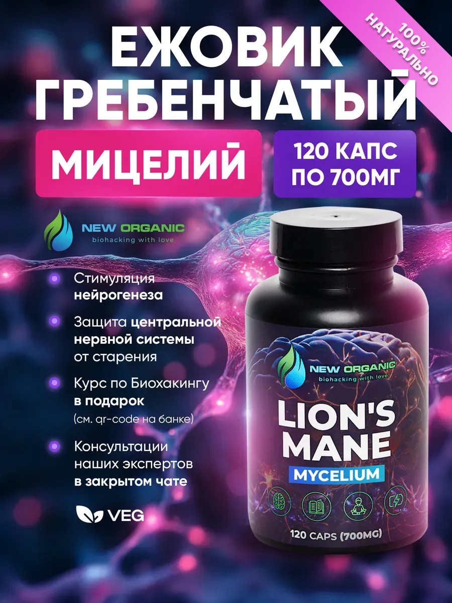 | Комплектация | Мицелий Ежовика Гребенчатого; Гриб Lion's mane; 1 банка -120 капсул по 700мг Ежовика Гребенчатого |