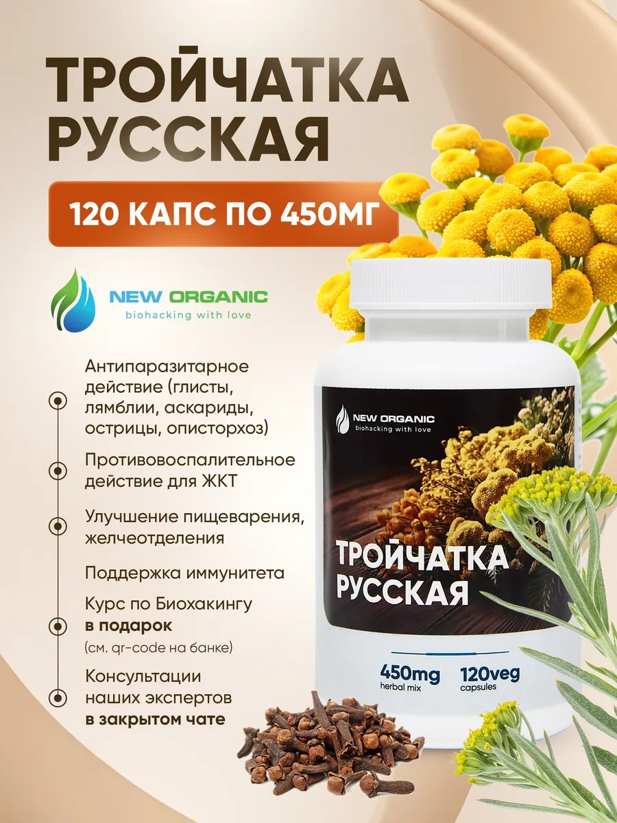 The antiparasitic complex "Troychatka" is a natural remedy based on three medicinal plants. The combination of tansy, bitter grass, and cloves provides an unrivaled cleansing effect, allowing you to quickly get rid of worms and parasites.
