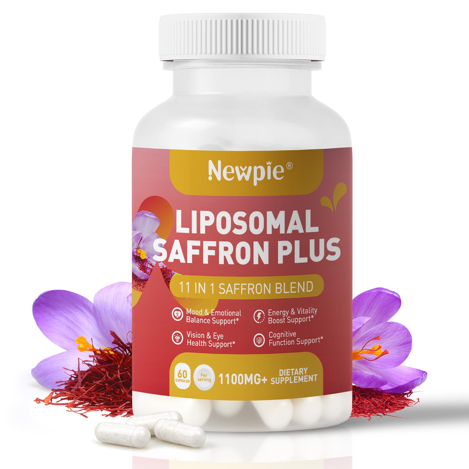 Newpie Saffron Supplements - 100% Pure Saffron Extract Capsules - Natural Mood Enhancer, Supports Eye & Heart Health, Boosts Energy - Premium Supplement for Women & Men(60 Servings (1)