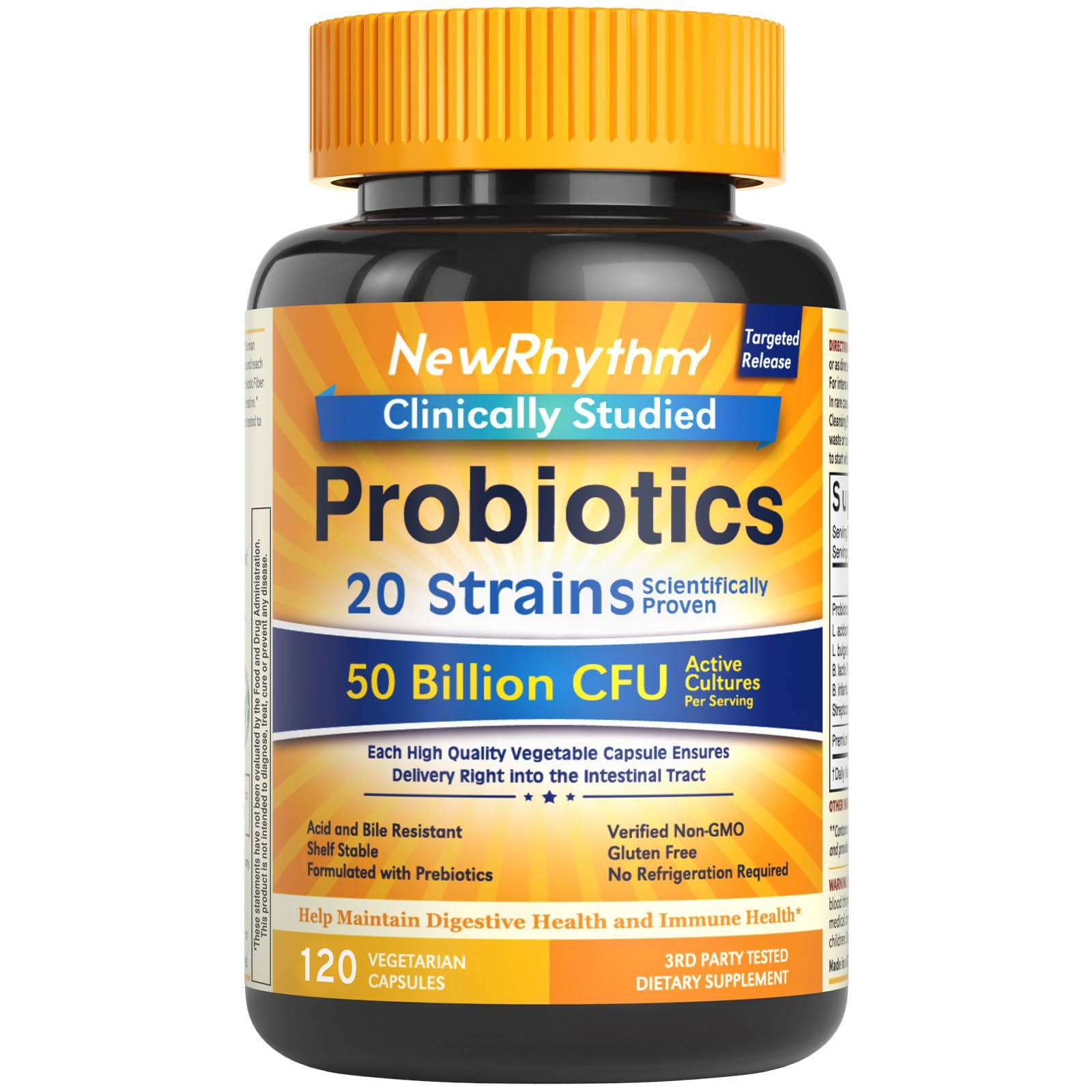 ?100% Satisfaction Guaranteed? We stand behind our products with confidence. If in anyway you are not completely satisfied with our products, please let us know in 30 days, we will give you money back. ?100% Natural, Non-GMO, Gluten Free? NewRhythm 50 Billion Probiotics is Formulated with 100% Natural Ingredients and Independently Tested in 3rd Party Labs in USA. Our Probiotics Supplement is Verified NON-GMO, Gluten Free and Verified Free of Sugar, Soy, Yeast, Egg, Wheat, Corn, Peanuts, Fish, Shellfish, Magnesium Stearate, Artificial Ingredients, Fillers, Binders, Preservatives. ?Potent and Pure for Your Digestive Health and Immune Health*? Our All Natural Probiotics Provides Support For the Establishment and Maintenance of Favorable Intestinal Flora. Gives You Powerful Support for Healthy Digestion and Balanced Intestinal Ecology. Our Products are Shelf Stable that Does NOT Require Refrigeration. ?50 Billion 20 Strains Targeted Release Formula? NewRhythm 50 Billion Probiotics Capsules is Scientifically Backed and Clinically Proven, Formulated by Doctor with 50 Billion Living Organisms Per Serving, Featuring Targeted Release Technology to Help Probiotics Survive Stomach Acids and Reach Your Intestinal Track. Organic Prebiotics