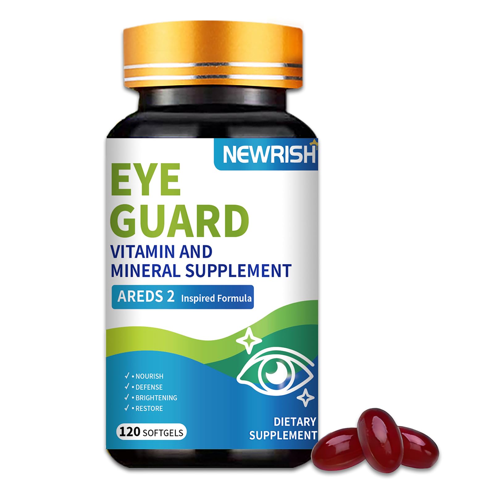 Newrish AREDS 2 Formula 120 Softgels - High Potency Lutein & Zeaxanthin Non-GMO Gluten-Free Multivitamin Mineral Supplement