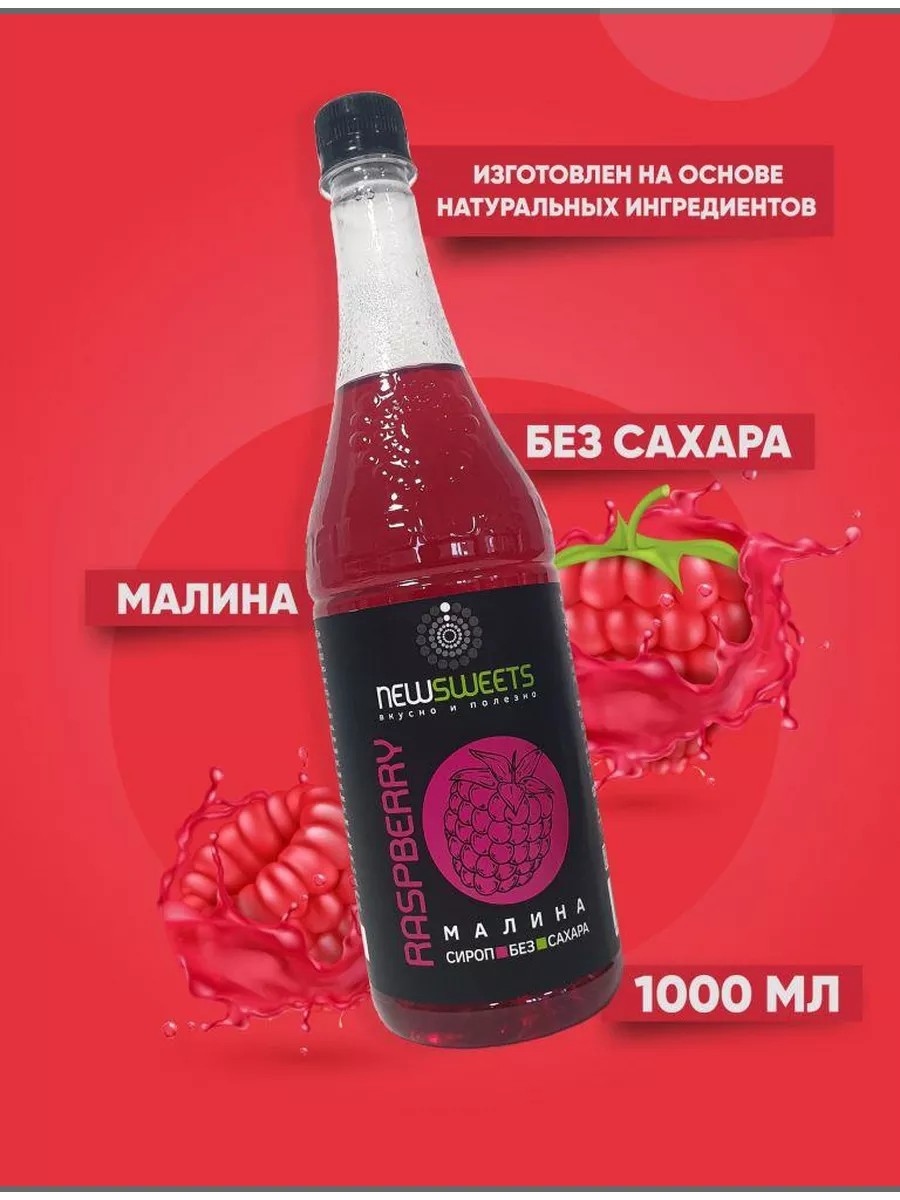 Сироп для коктейлей, без сахара Малина, 1000 мл