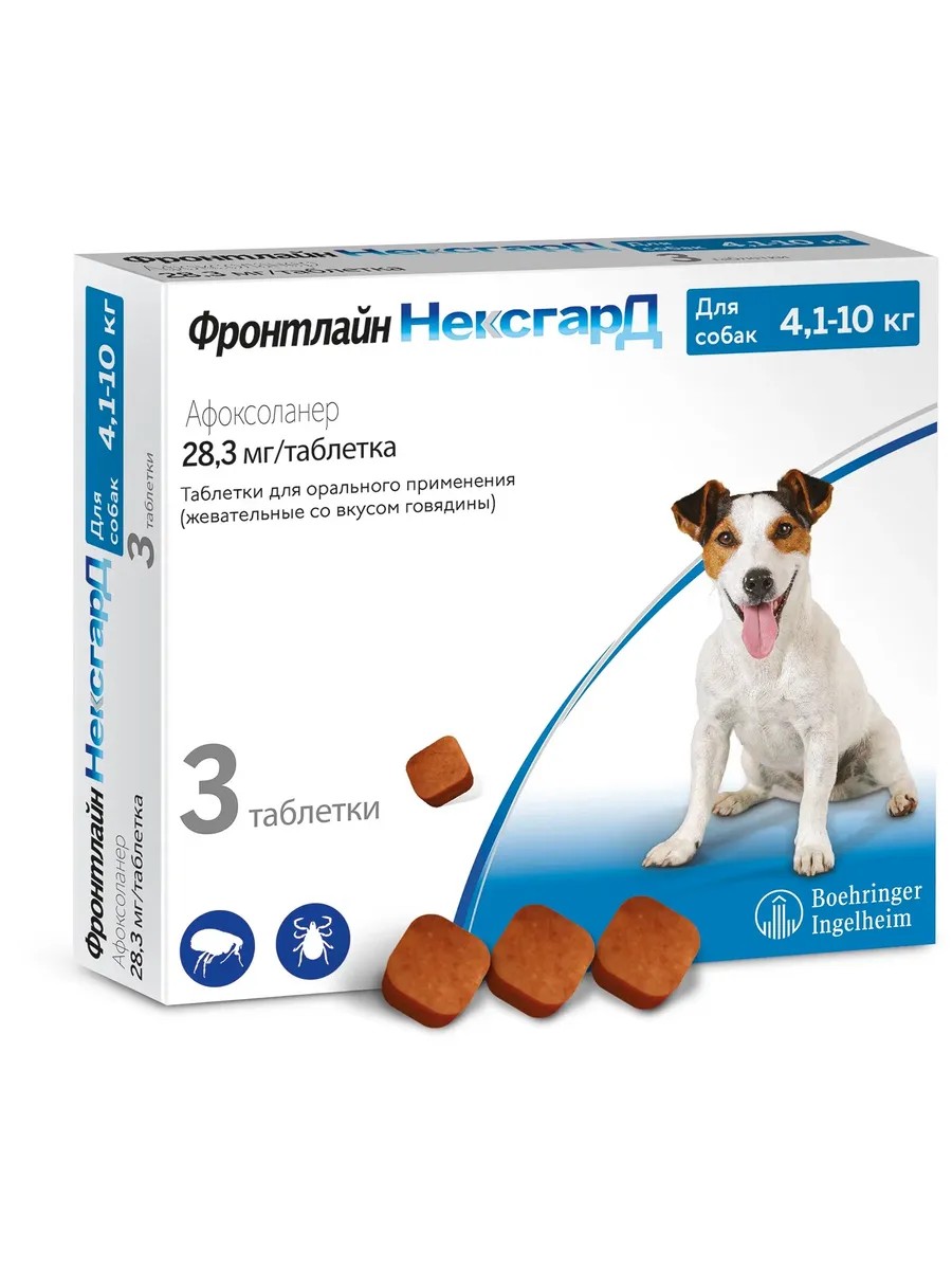 Нексгард Фронтлайн 28 мг для собак 4 - 10 кг 3 таблетки