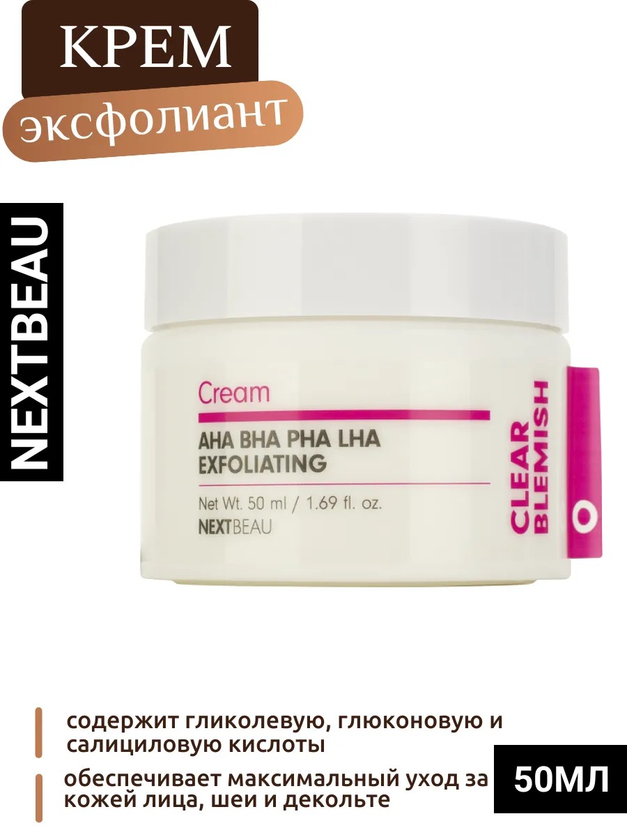 NEXTBEAU Clear Blemish Cream, 50ml Крем корейский с кислотами, пилинг-формула 50мл, NEXTBEAU. Этот крем идеально подходит как для чувствительной, так и для нормальной кожи, а также для всех остальных типов: сухой, жирной и проблемной. Его формула разрабатывалась с учетом самых современных научных достижений в области дерматологии и косметологии, что делает его незаменимым помощником в уходе за вашей кожей.