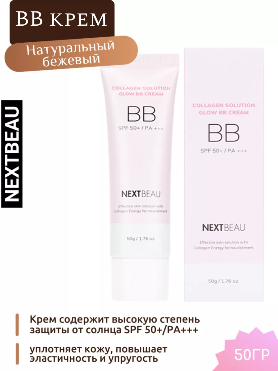 NEXTBEAU Collagen Solution Glow BB Cream SPF 50+ / PA+++ 02 Natural Beige 50g Омолаживающий солнцезащитный корейский bb крем тональный с гидролизованным коллагеном 02 Натуральный бежевый 50г. Погрузитесь в мир корейской косметики с BB кремом, который станет незаменимой основой вашего макияжа.