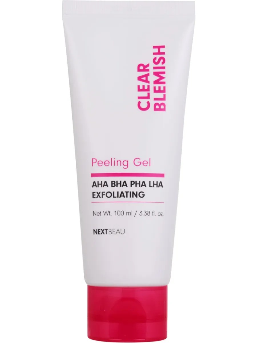NEXTBEAU Clear Blemish AHA/BHA/PHA/LHA Exfoliating Peeling Gel - Exfoliating and soothing peeling gel for the face. AHA/BHA/PHA/LHA acids gently exfoliate dead skin cells and remove impurities that clog pores, hyaluronic acid moisturizes, and grapefruit and tea tree extracts even out skin texture and tone.