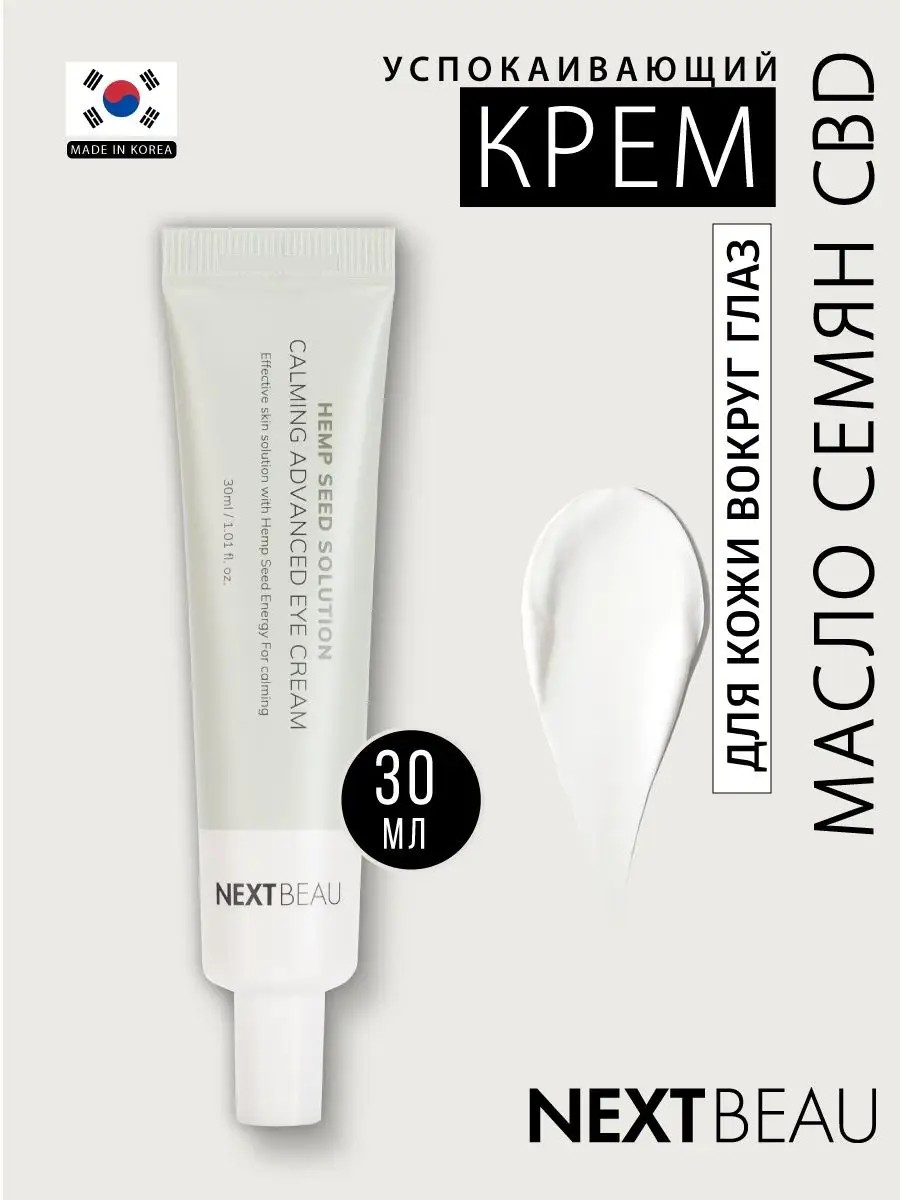 Успокаивающий крем для области вокруг глаз, для ухода за кожей век с маслом семян cbd, Корея 30 мл. Успокаивающий крем для кожи вокруг глаз улучшает тонус тонкой кожи век, смягчает, повышает тургор и увлажняет. Масло семян cbd препятствует потере влаги, восстанавливает липидный барьер и разглаживает морщины. Масла авокадо и ши питают, обновляют и усиливают барьерную функцию кожи. Корейская косметика подойдет для сухой и обезвоженной кожи век, в том числе и для проблемной кожи. Применение: небольшое количество крема нанести на чистую кожу век массирующими движениями до полного впитывания. Идеальный подарок женщине, маме, подруге, девушке, любимой на день рождения, Новый год, 8 марта, день Святого Валентина. Рекомендуется к использованию в комплексе с серией корейской косметики для ухода за лицом и телом NEXTBEAU.