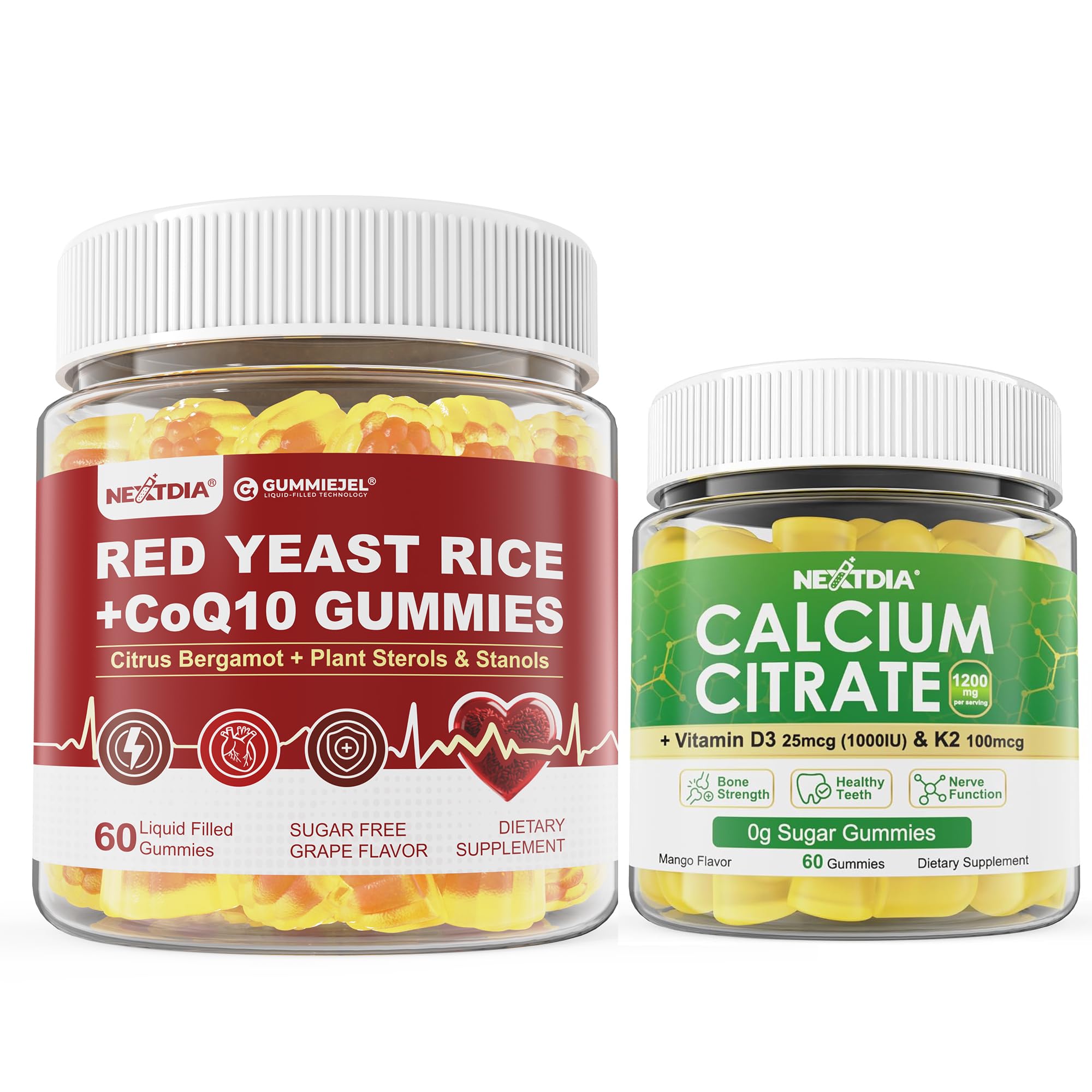 Nextdia 1P Calcium Citrate Gummies 1200MG + 1P Red Yeast Rice Gummies 2400MG for Adults