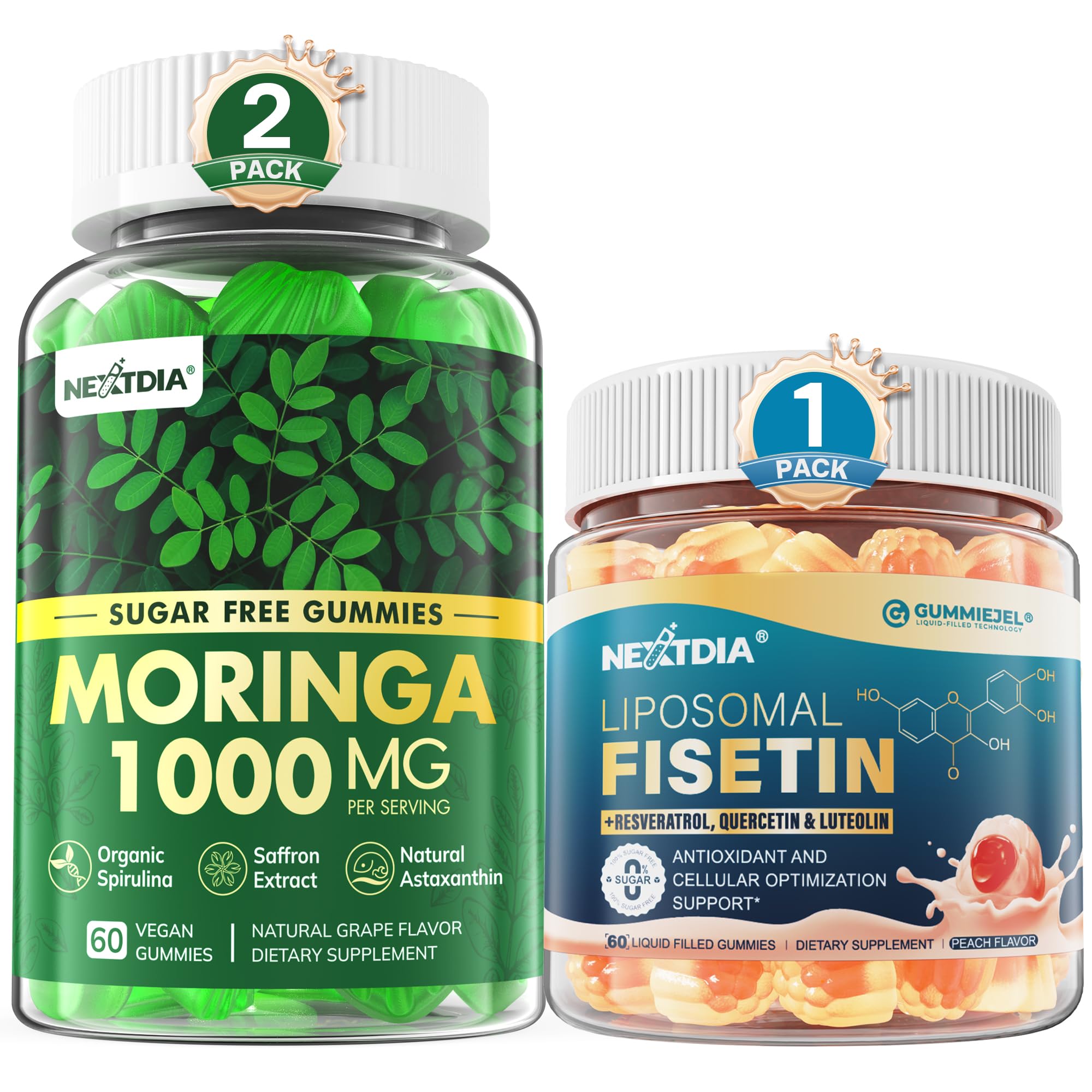 Nextdia 1Pack Liposomal Fisetin 200mg Liquid Gummies + 2Pack Moringa Gummies 1000mg Sugar Free