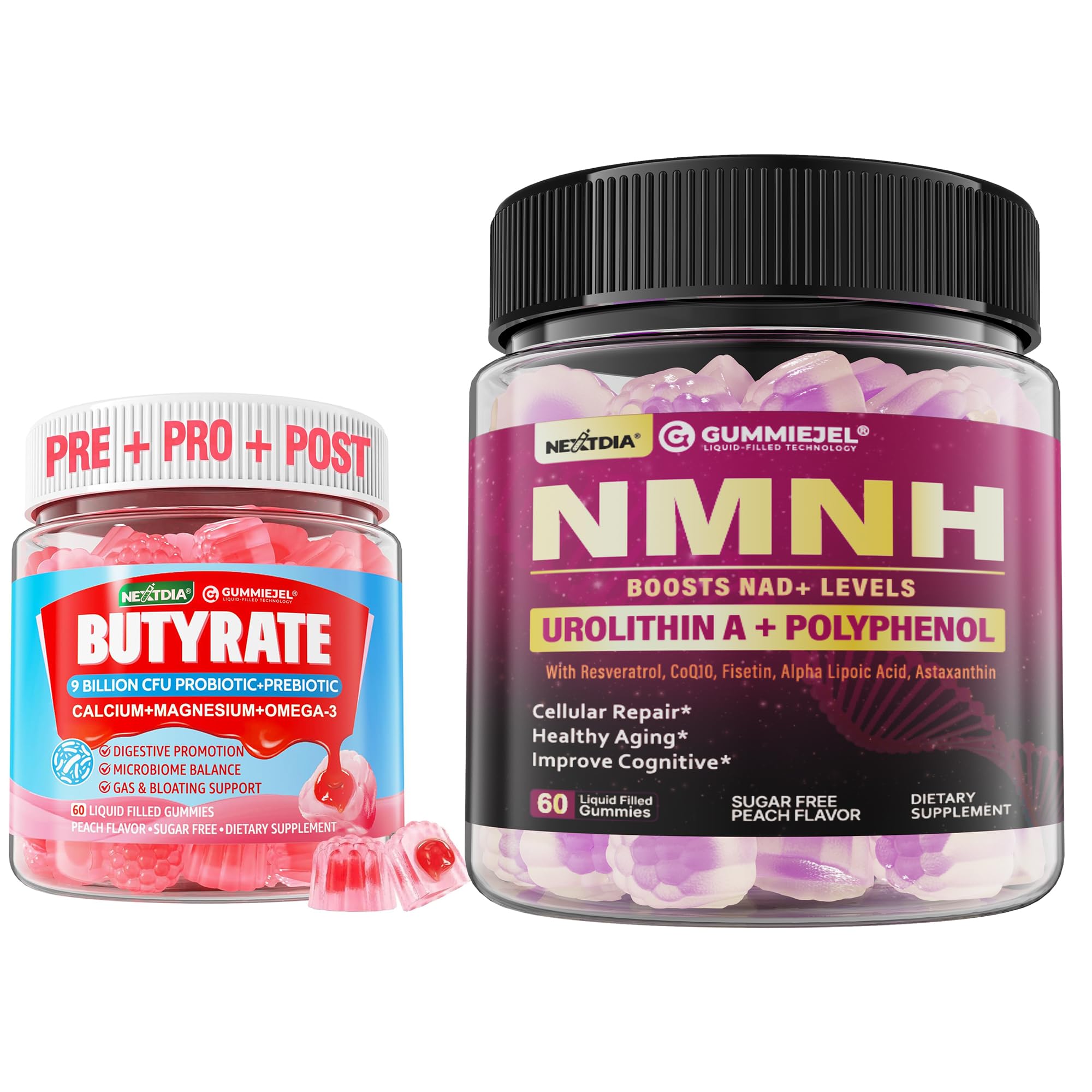 Nextdia 1PACK NAD+ Supplement for Women & Men with Urolithin A Resveratrol + Butyrate Gummies with Probiotic + Prebiotic + Postbiotic