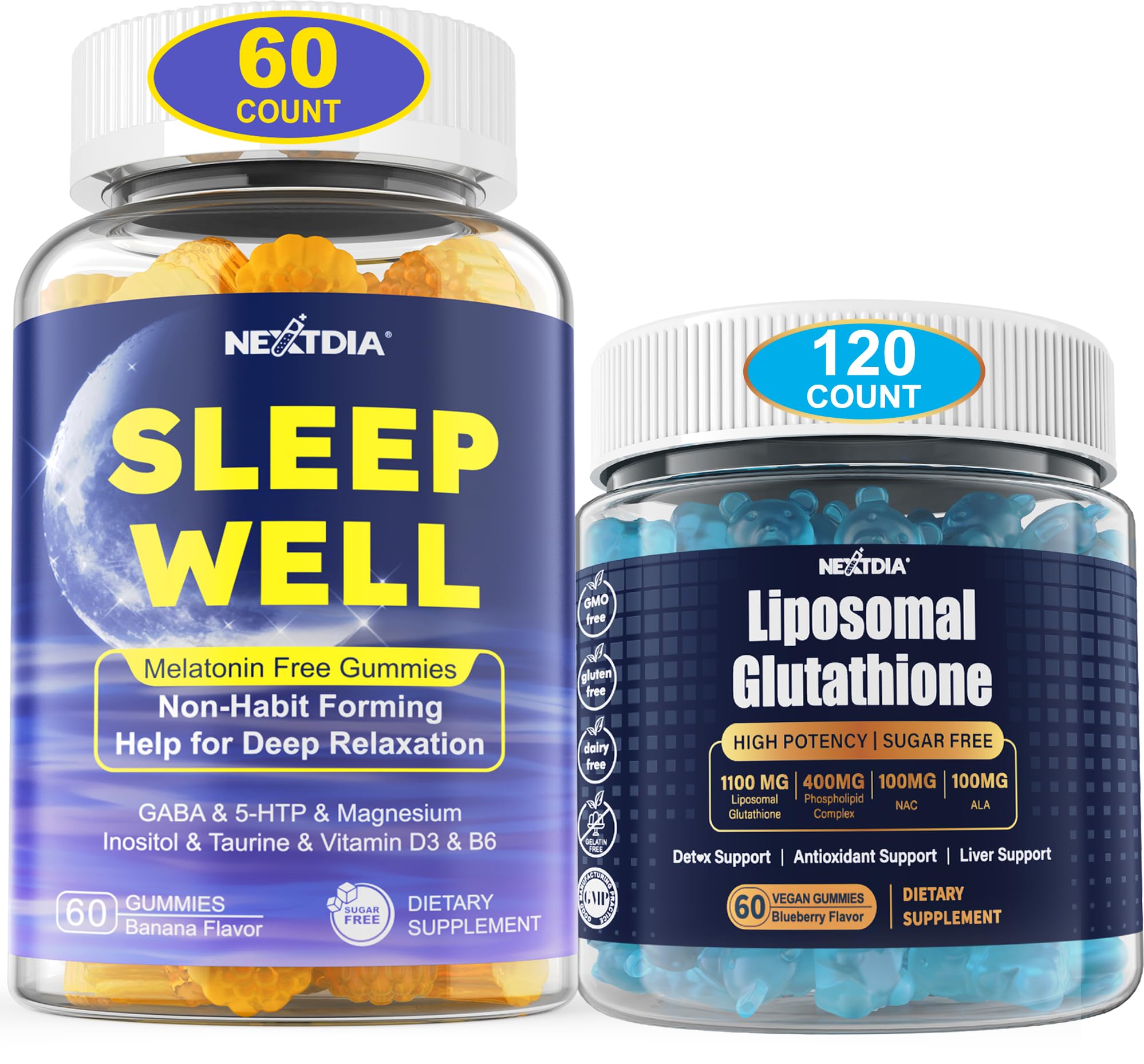 Nextdia Melatonin Free Natural Sleep Gummies for Adults + Liposomal Glutathione Gummies Supplement for Women