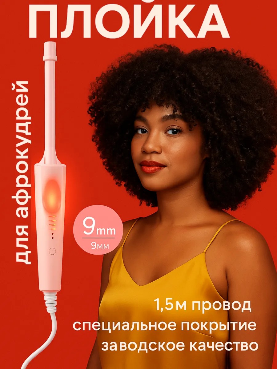 Плойка для афрокудрей диаметром 9 мм — это идеальное решение для создания упругих локонов и оригинальных укладок. Благодаря узкому нагревательному элементу вы можете завивать даже короткие волосы, добиваясь эффекта натуральных кудрей.