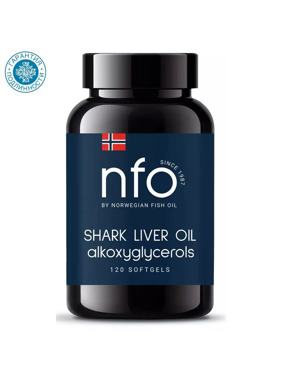 NFO Shark Liver Oil is a unique complex of highly purified shark liver oil with alkoxyglycerides and squalene, along with additional Omega-3 and vitamins A, D, and E to strengthen the immune system and enhance anti-tumor protection. The shark liver oil for NFO(R) Shark Liver Oil is obtained from five species of sharks found in the Atlantic Ocean at great depths (up to 1,000 meters). The most unique of these are the Portuguese shark and the black dogfish (Fabricius's shark). These sharks are rich in substances that provide strong immunity and resistance to many diseases, including tumor formation. It is believed that sharks can survive at great depths, where oxygen levels are negligible, only thanks to their gigantic livers, which contain squalene and alkoxyglycerides. 750 mg capsules. All biologically active components enhance each other's effects, so the NFO Shark Liver Oil complex: Strengthens the immune system; Accelerates inflammation without becoming chronic; Normalizes metabolism; Reduces the risk of cardiovascular disease; Reduces the risk of tumors. This is a dietary supplement. It is not a medicine.