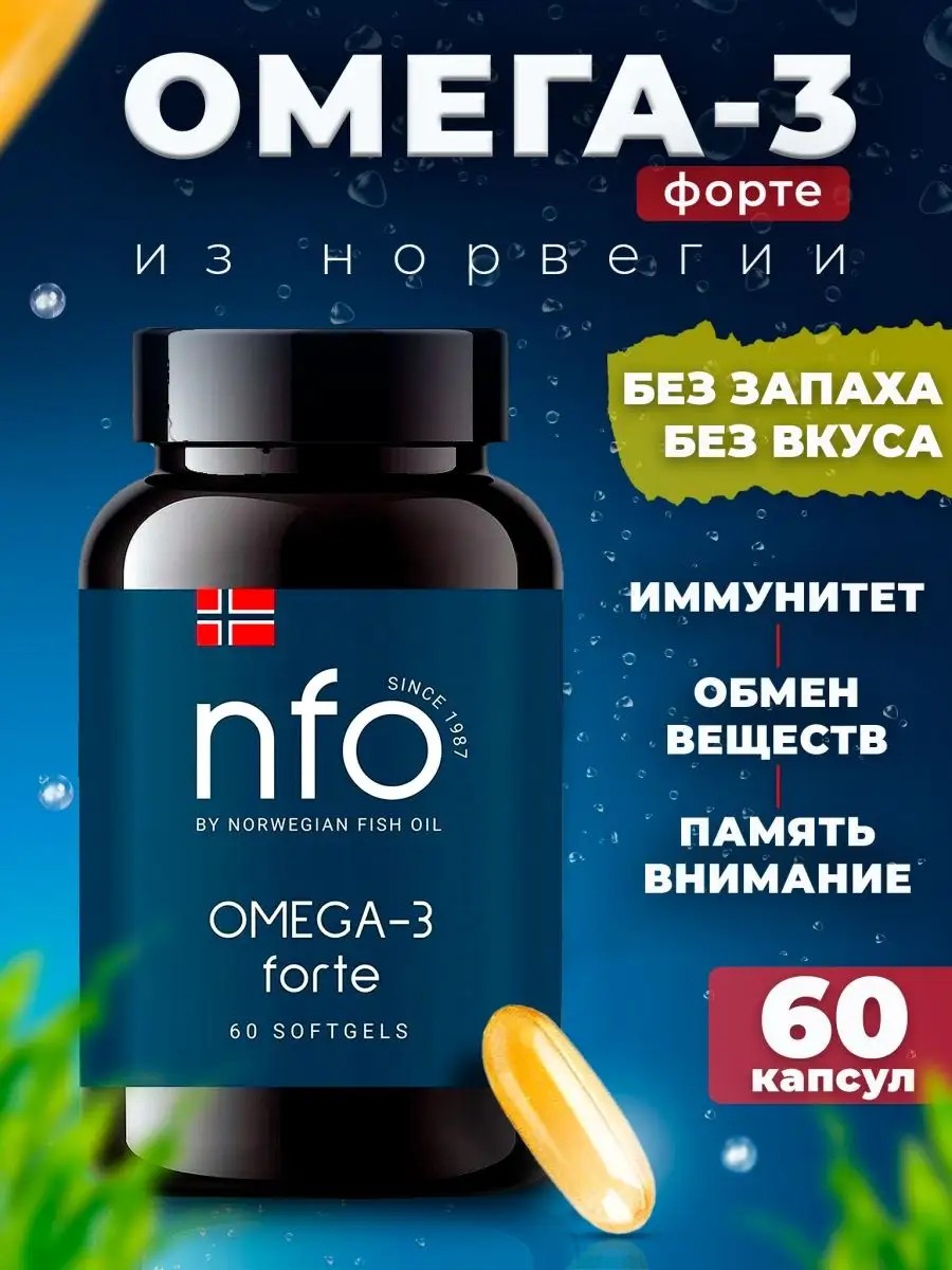 NFO OMEGA-3 Forte семейная формула - это уникальный натуральный биоактивный комплекс Омега-3 ПНЖК на основе высокоочищенного рыбьего жира в мягких желатиновых капсулах без запаха и вкуса с высокой концентрацией Омега-3 ПНЖК в одной капсуле. Продукт, разработанный специально для поддержания здоровья всей семьи. В составе этого препарата собраны самые полезные компоненты, которые обеспечивают организм всей семьи витаминами и микроэлементами, необходимыми для его нормального функционирования. Омега-3 жирные кислоты, содержащиеся в этом препарате, являются неотъемлемой частью здорового питания. Омега-3 1000 мг положительно действуют и способствуют улучшению работы сердечно-сосудистой системы, снижает уровень холестерина в крови и улучшают зрение. Уменьшает риск сердечно-сосудистых заболеваний и способствует нормализации артериального давления. Улучшает обмен веществ и липидный обмен в организме, борется с синдромом хронической усталости и снижает риск возникновения рака. Активизирует иммунитет, уменьшает интенсивность воспалительных процессов. Улучшает память, внимание, мыслительные функции. Участвует в формировании нервной системы и органа зрения у детей. Он способствует укреплению суставов, костей и кожи, а также улучшает состояние волос и ногтей. Коллаген, входящий в состав, особенно важен для женщин, так как помогает сохранить молодость и красоту кожи, способствует увлажнению кожи, разглаживанию морщин. Улучшает состояние репродуктивной системы мужчин и женщин. Норвежские препараты не уступают по качеству американским NOW. Рекомендации по применению: взрослым по 1-2 капсулы в день во время еды. Состав 1 капсулы: Рыбий жир 1000 мг, ПНЖК омега-3 620 мг, в т.ч. эйкозапентаеновая кислота 310 мг, докозагексаеновая кислота 205 мг, Витамин E 1,46 мг. **Внимание, продукт может поставляться в старой и новой упаковке.** Омега-3 Форте семейная формула - это не просто витаминный комплекс, а настоящий источник здоровья и энергии для всей семьи. Его уникальный состав поможет вам и вашим близким поддерживать иммунитет, улучшать память и концентрацию, снижать уровень стресса и улучшать общее самочувствие. Выбирайте Омега-3 Форте семейная формула и дарите своей семье здоровье и силу каждый день!