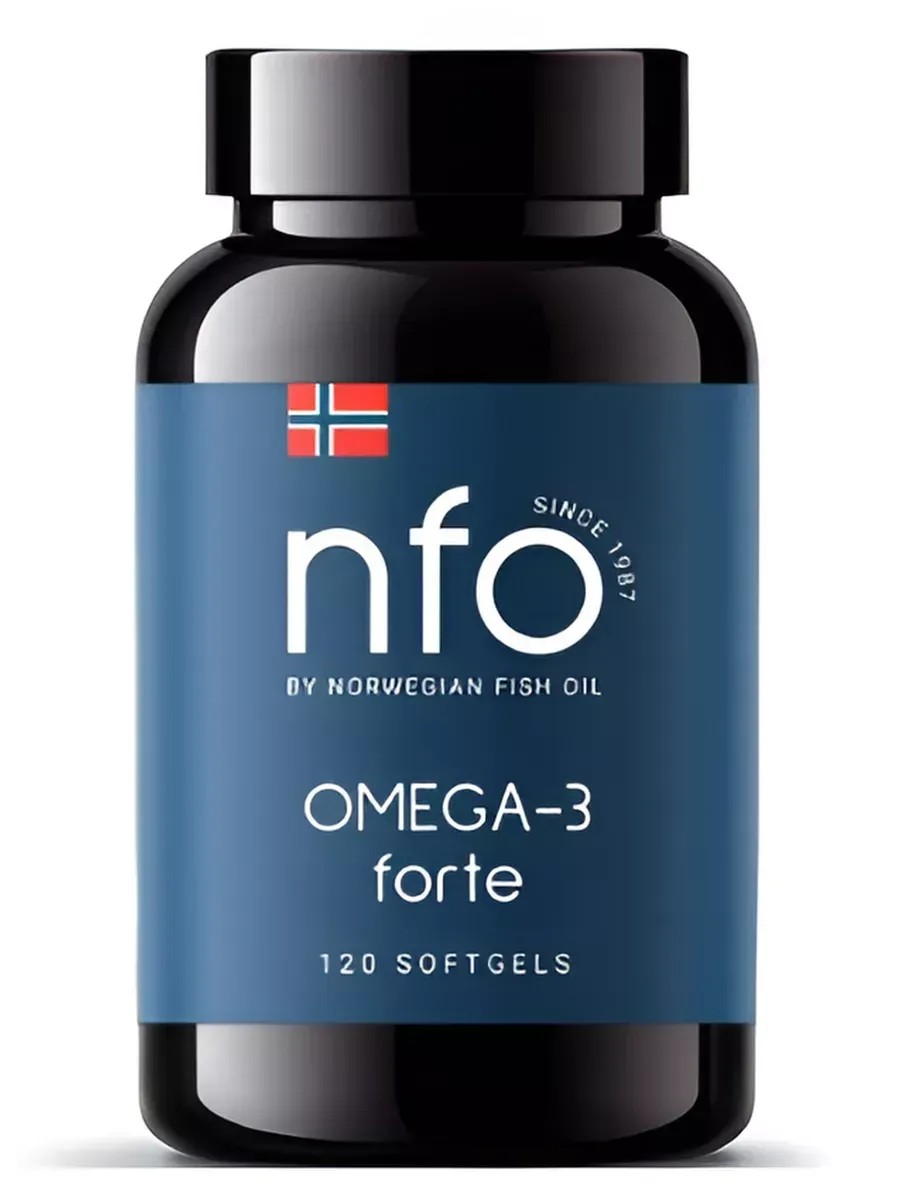 NFO OMEGA-3 Forte (NFO OMEGA-3 Forte) Soft gelatin capsules filled with an oily liquid (fish oil) of a light yellow color. Fish oil is obtained from fresh fish of the anchovy, horse mackerel, herring, smelt, mackerel, and sandfish families. The capsule shell is made of natural gelatin (bovine). The daily dose (1 capsule) contains: Omega-3 PUFAs - 620 mg, including: eicosapentaenoic acid 310 mg, docosahexaenoic acid 205 mg, vitamin E 1.5 mg. and properties: NFO OMEGA-3 Forte dietary supplement is a concentrate of omega-3 PUFAs obtained from fish of the anchovy, horse mackerel, herring, smelt, mackerel, and sandpiper families. The importance of omega-3 PUFAs is associated with the structural and functional organization of cell membranes. Omega-3 polyunsaturated fatty acids are precursors of active and important bioregulators formed from them - eicosanoids of the E3 line, which affect thrombus formation processes, blood vessel tone, and immune status. Omega-3 PUFAs are considered "essential" fatty acids, meaning they cannot be synthesized by the body and must be obtained from food. They have a broad spectrum of effects on various organs and systems. Increasing dietary omega-3 PUFA intake inhibits the development of atherosclerosis and other cardiovascular diseases, helps lower blood cholesterol levels by reducing LDL levels, and more. Vitamin E is a direct-acting antioxidant that protects PUFAs and cell membrane lipids from peroxidation and free radical damage, and regulates the metabolism of proteins, fats, and carbohydrates.