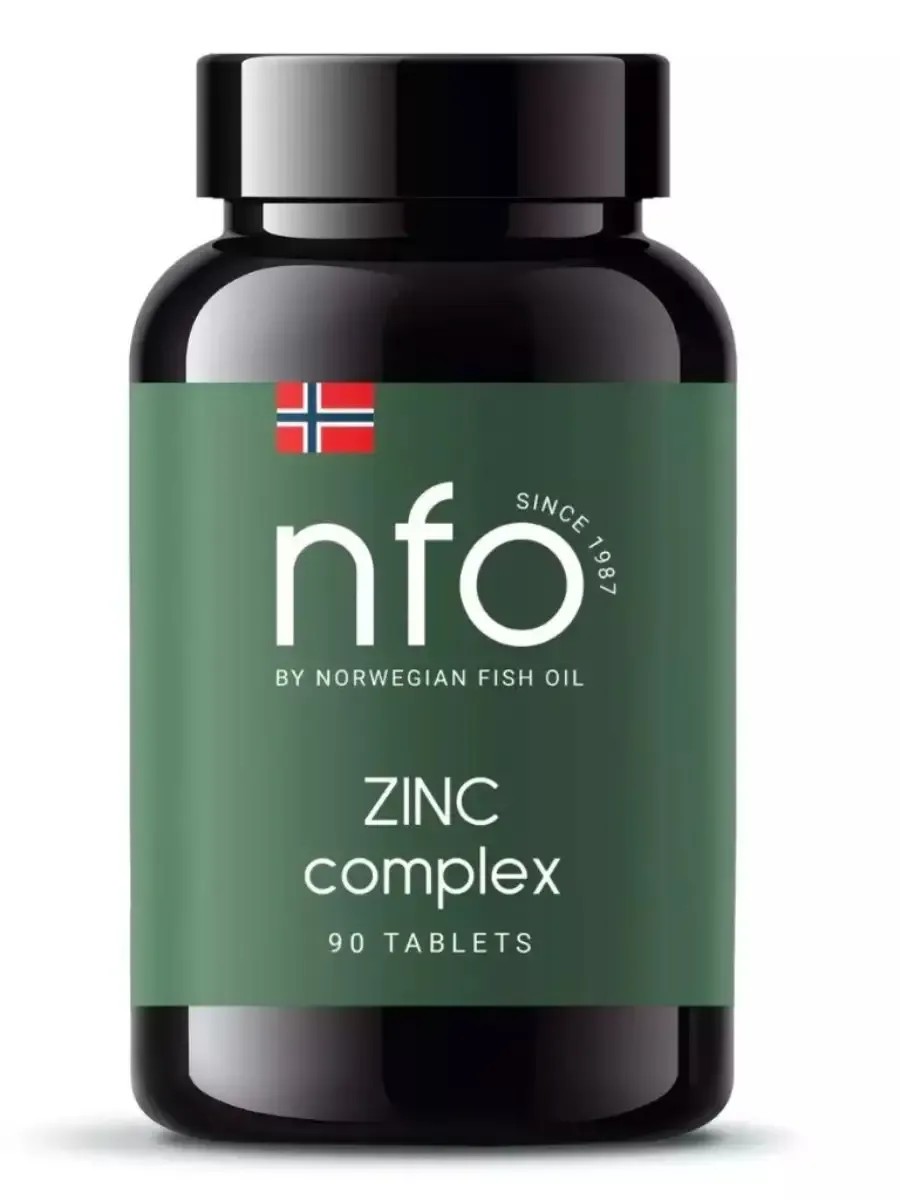 NFO Zinc Complex (НФО Комплекс Цинка) - биоактивный комплекс цинка нового поколения (БАД). Цинк – один из важнейших минералов для поддержания иммунной системы организма. Он участвует в огромном количестве клеточных процессов: в синтезе РНК, в Т-лимфоцитов – иммунных клеток, которые распознают и уничтожают чужеродные агенты, в первую очередь вирусы. Без цинка противовирусные белки (интерфероны) не могут вырабатываться полноценно, что значительно снижает сопротивляемость к инфекционным заболеваниям. Кроме того, цинк участвует в ферментных процессах, способствует синтезу собственного коллагена, влияет на репродуктивную сферу и чувствительность клеток к инсулину, предотвращает выпадение волос. Содержит в своем составе легкодоступный бисглицинат хелат цинка и экстракта черного перца для быстрого устранения дефицита цинка в организме. Бисглицинат хелат цинка - соединение цинка с двумя молекулами аминокислоты глицин для увеличения биодоступности: хелатная форма обладает биодоступностью выше 90%: цинк практически сразу всасывается в кровь. кстракт черного перца содержит алкалоид пиперин, который значимо повышает усвоение цинка организмом, усиливает эффективность его действия. Кроме того, пиперин обладает антиоксидантной активностью, защищая клетки от окислительного стресса. NFO Комплекс цинка способствует: укреплению иммунитета и противовирусной защите (повышает сопротивляемость вирусным инфекциям, включая Ковид-19), улучшению работы репродуктивной системы (участвует в процессе сперматогенеза и синтеза тестостерона у мужчин), усилению выработки инсулина, повышению чувствительности клеток к этому гормону, синтезу собственного коллагена, предотвращению выпадения волос.