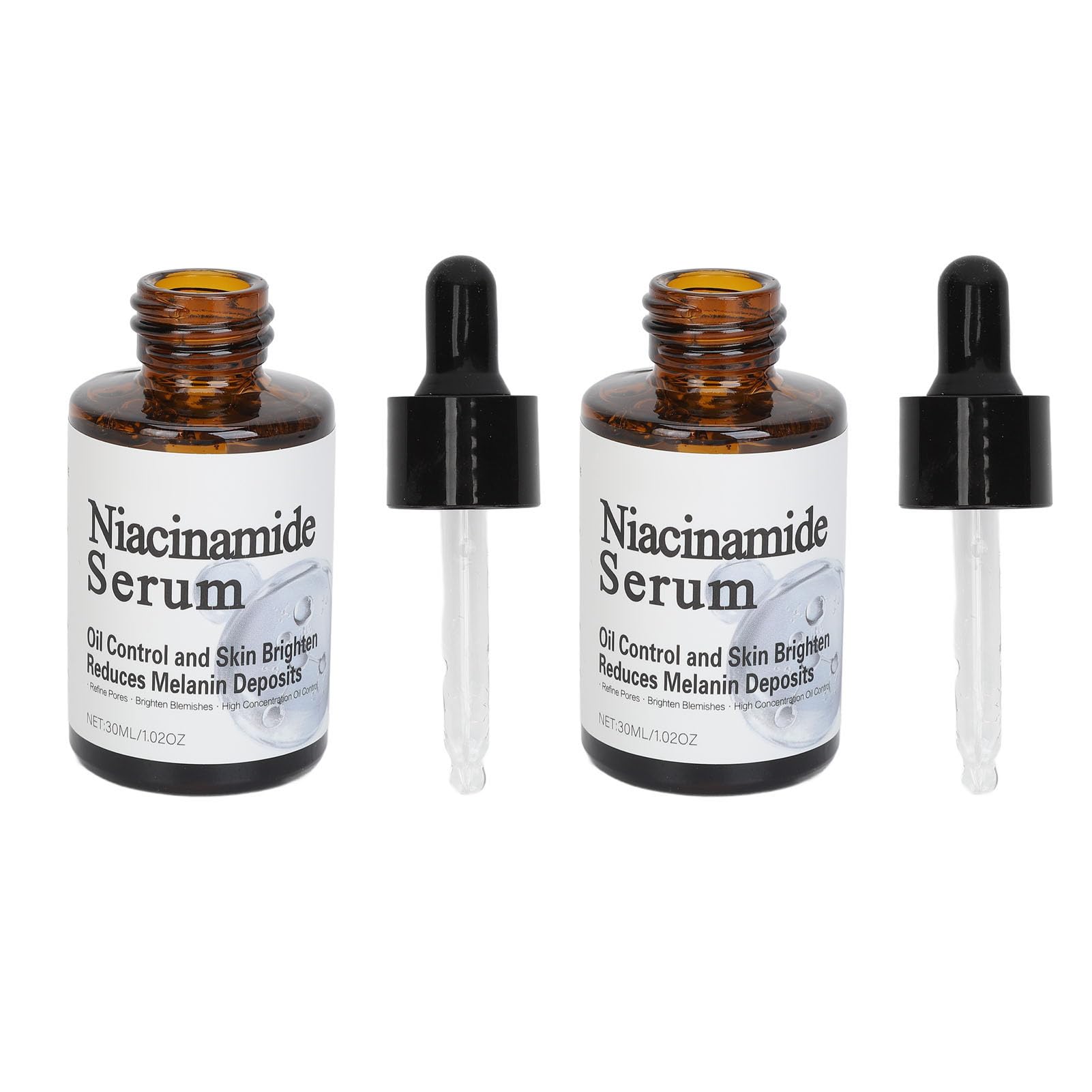 1. ENRICHED WITH NIACINAMIDE: Infused with a potent dose of Niacinamide, this serum helps brighten the complexion for skin that radiates with a youthful glow. 2. MOISTURIZE AND BRIGHTEN: Niacinamide serum goes above by not only moisturizing the skin but also brightening it, delivering a two in one impact. 3. TARGETS DARK SPOTS: Niacinamide serum effectively targeting and fading dark spots, uneven skin tone, and pigmentation for visibly smoother and more luminous skin. 4. WRINKLE REMOVAL: Powerful niacinamide serum combats signs of aging by reducing the appearance of wrinkles and fine lines, promoting a firmer and more youthful looking complexion. 5. LIGHTWEIGHT TEXTURE: The lightweight texture absorbs quickly into the skin, making it especially suitable for daily skin regimen, delivering intensive care without the heaviness. Specification: Item Type: Niacinamide Serum Material: Water Net Content: 2 x 30ml Package List: 2 x Bottle of Niacinamide Serum SAFETY WARNING This product has no safety hazard to users