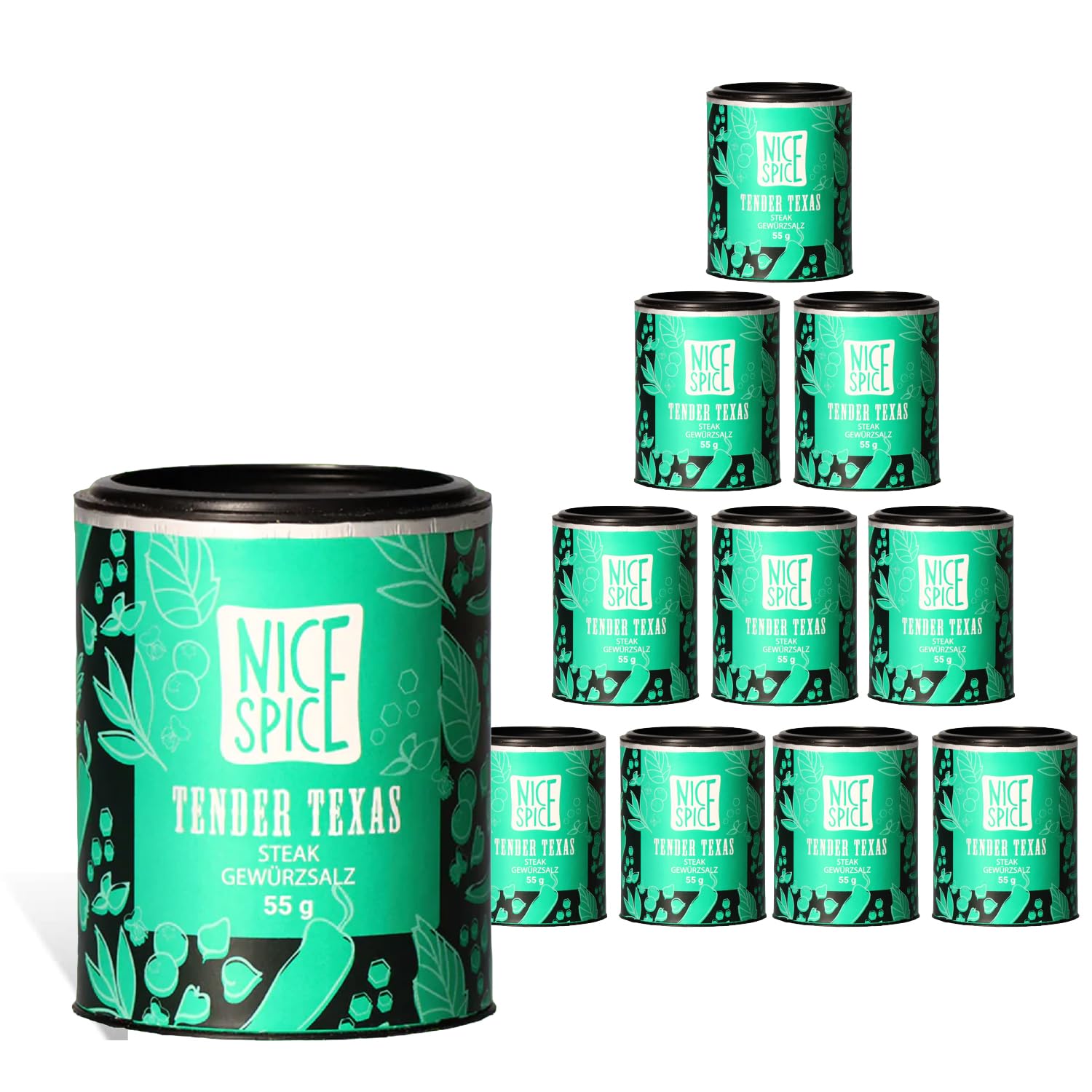 Nice Spice Tender Texas – Steak Spice Mix Yeeehaaaaw – with TENDER TEXAS, every steak becomes a steak of the arts. After all, every good piece of meat deserves the right seasoning. Rub the seasoning into the meat before frying or barbecuing, or sprinkle it on the meat as a grand finale after preparation. Brat' Dir avec NICE SPICE ein Prachtsteak von dem Du deinen Deinen Enkelkindern noch erzählhlen wirst. After all, only a good steak is truly good. INGREDIENTS sea salt, pepper, raw cane sugar, paprika, garlic, ginger, onions, thyme, allspice, tomatoes, cloves, nutmeg.Spice Container: This storage pack in three sizes is ideal as a great gift for hobby cooks, students, or as a Christmas present!. TENDER TEXAS: This spice blend is made from the finest ingredients. NICE SPICE Tender Texas consists of 12 ingredients that are perfect for your steak and grilling. STEAK SPICE: Are you looking for the path to the perfect steak? You are one step closer to your goal with the NICE SPICE Tender Texas spice blend. NICE GRILLS: This spice blend is truly NICE! A must-have for all barbecue lovers and barbecue masters. Perfect for juicy chicken and tender steak!. 10 Boxes: The NICE SPICE 10-pack steak spice set is the spice kit for all barbecue and meat lovers. 10 x 60g of spices for grilling and steaks. Nice Spice Tender Texas – Mélange d'épices pour steak Yeeehaaaaw – avec TENDER TEXAS, chaque steak devient un steak des arts. Après tout, chaque bon morceau de viande mérite le bon assaisonnement. Frotter la viande avec l'assaisonnement avant la friture ou le barbecue ou saupoudrer sur la viande en grande finale après la préparation. Brat' Dir mit NICE SPICE ein Prachtsteak von dem Du Deinen Deinen Enkelkindern noch erzählhlen wirst. Après tout, seul un bon steak est vraiment bon. INGRÉDIENTS sel de mer, poivre, sucre de canne brut, paprika, ail, gingembre, oignons, thym, piment de la Jamaïque, tomates, clous de girofle, muscade.Récipient d'épices : ce paquet de conservation en trois tailles est idéal comme cadeau idéal pour les cuisiniers amateurs, les étudiants ou comme cadeau de Noël !. TENDER TEXAS : Ce mélange d'épices est composé des meilleurs ingrédients. NICE SPICE Tender Texas se compose de 12 ingrédients parfaits pour votre steak et vos grillades. ÉPICE À STEAK: Vous cherchez le chemin du steak parfait? Vous êtes un pas plus proche de votre objectif avec le mélange d'épices NICE SPICE Tender Texas. NICE GRILLES : Ce mélange d'épices est vraiment NICE ! Un must pour tous les amateurs de barbecue et les maîtres du barbecue. Parfait pour le poulet juteux et le steak tendre!. 10 boîtes : le lot de 10 épices à steak NICE SPICE est le kit d'épices pour tous les amateurs de barbecue et de viande. 10 x 60 g d'épices pour grillades et steaks.