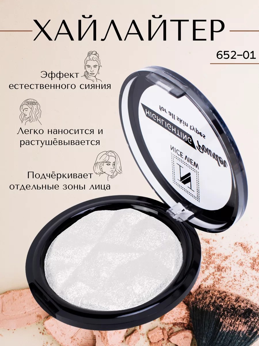 Предназначен для подчеркивания отдельных зон лица путем их высветления.Легко наносится и растушевывается, сливаясь с кожей и создавая эффект естественного сияния кожи. Способ применения: Нанесите на кожу лица с помощью кисточки. Участки нанесения выбираются в зависимости от того, какой визуальный эффект должен быть достигнут: если добавить хайлайтер на косточки под глазами - темные круги исчезнут на область над бровями и виски - лоб станет выше и шире; на контур верхней губы (Лук Купидона) - их объем увеличится; в центр верхнего века, во внутренний уголок глаз и на линию под бровями - взгляд станет лучистым; на спинку носа - он сузитсяМеры предосторожности: Для наружного применения. Хранить при комнатной температуре в недоступном для детей месте. Избегать контакта с раздраженными или поврежденными участками кожи. Снимать с помощью средства для снятия макияжа.