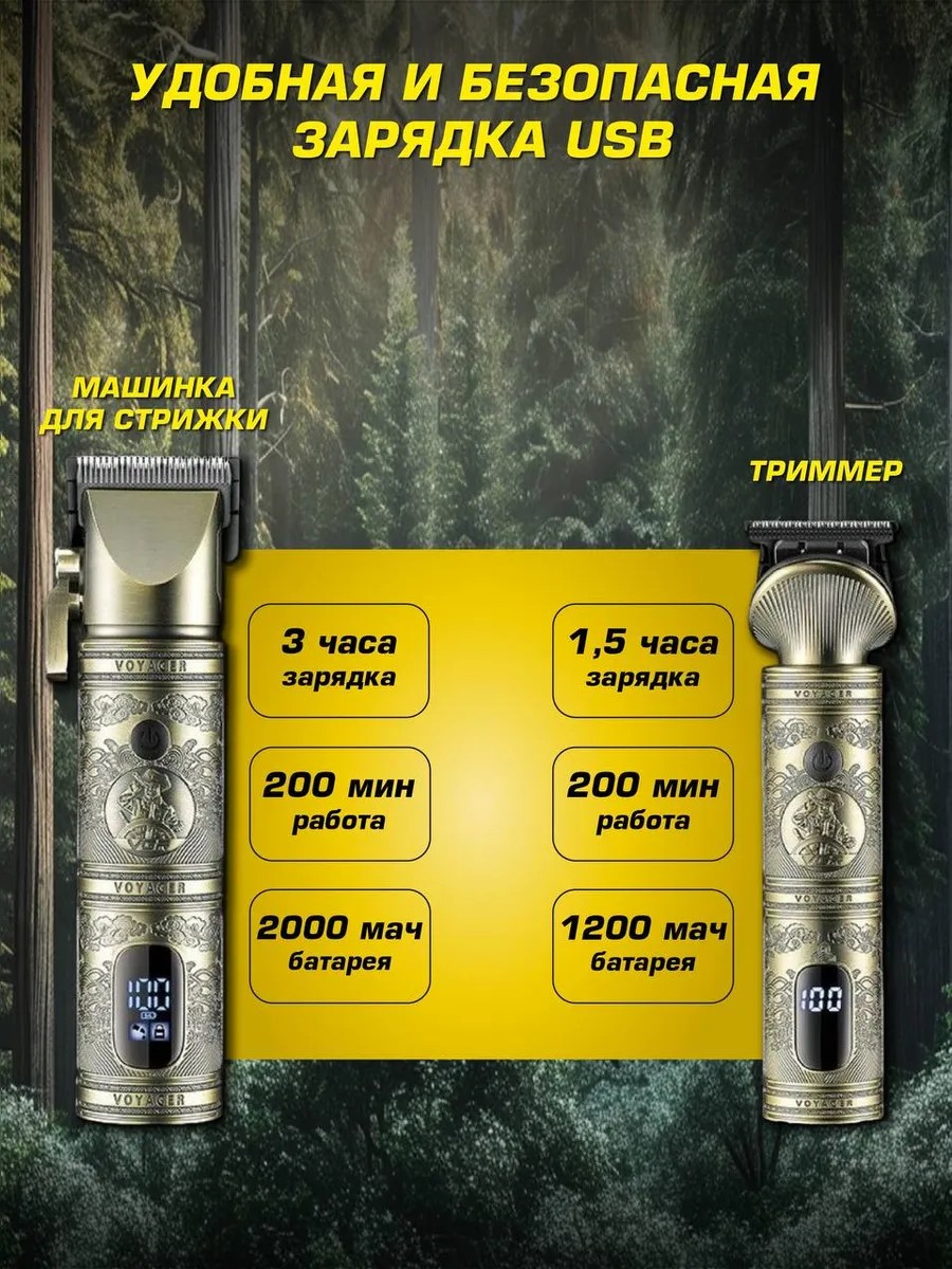 VGR V-670 — это набор для стрижки волос, который включает в себя машинку и триммер. Оба устройства выполнены в металлическом корпусе и оснащены дисплеем.