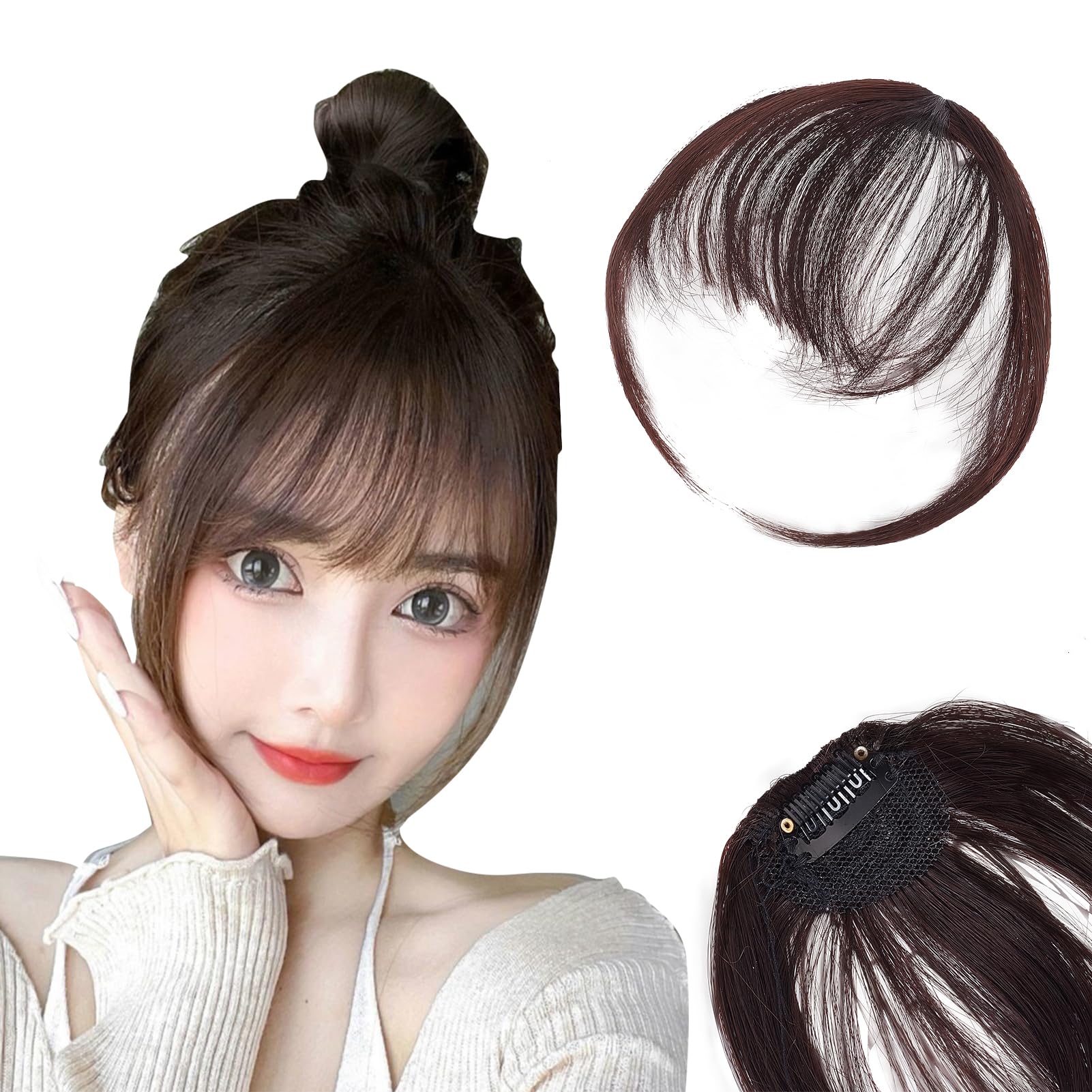 SPECIFICATIONS: Color: dark brown Material: high temperature wire Size: one size PACKAGE CONTENTS: 1 pcs CUSTOMER SERVICE: If you have any problem of our product, you can click"seller contact"button in your account to email us. we would be delighted to help you solve the problem as soon as we can.TIPS FOR MAINTENANCE: Following shipping, your hair bangs may require washing and blow-drying to restore their appearance. Remember, frequent styling can lead to dry ends or splitting. Using a mild hair conditioner can help prolong the lifespan of your bangs. NO NEED TO CUT YOUR HAIR: The versatile design of our clip-in bangs complements nearly every face shape. Add a touch of flair to your hairstyle without the commitment of a haircut, offering an affordable and instant alternative to permanent changes. DIY STYLE: Customize and personalize our natural human hair bangs to suit your preferences. Trim them to your desired length, dye them, or style them as you wish. Instantly exude charm and allure for any occasion, whether it's a date, party, wedding, or daily wear. WISPY BANGS FOR A NATURAL LOOK: Our clip-in bangs are meticulously designed to deliver the most authentic and natural appearance. The strong clips ensure a secure hold, with the seam virtually invisible. The thickness of the bangs effectively covers the forehead, eliminating any concerns about wispy strands. TRANSFORM YOUR LOOK INSTANTLY: Elevate your style with our clip-in bangs crafted from high quality fiber, providing a seamless blend with your natural hair. Achieve a fresh look instantly, without causing any damage to your hair.