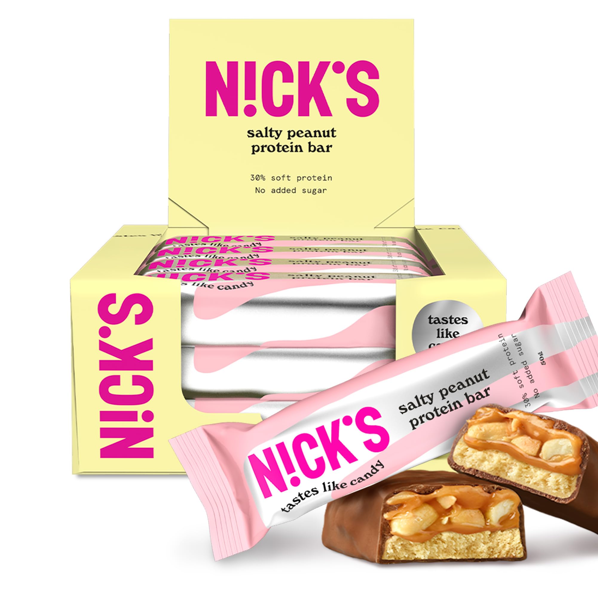 New protein bars from Nicks with soft protein layer that tastes like sweets. Ingredients ingredients Oluts (15 ), milk protein, soluble corn fiber, cocoa butter, milk powder, hydrolyzed collagen, humidity (glycerin), sweeteners (erythritus), inulin, cocoa mass, butter (milk), vegetable oils (sheet, coconut, sunflower), sweeteners (sorbit), Sweetener (xylitol), emulsifier (sunflower lecithin), natural aroma, salt, sweetener (steviolglycosides, sucralose).keto protein bar snack with only 203 kcal at any time of the day or as a reward after training.Ideal fuel for your muscles.Gluten -free, as wheat is converted into sugar in your body (glucose) and your blood sugar level quickly increases.Frequent and strong fluctuations in blood sugar have a negative impact on their weight and health.High quality protein strengthens your body with 30 protein from first -class whey, milk and collagen peptides.Without adding sugar with a sweetener mixture of stevia, erythritus, xylitol and sucralose, which has no significant influence on blood sugar.Low-carb protein bar with salted peanuts and a soft protein layer, prebiotic fiber, 15 g protein and only 3.7 g netboohydrates.Neue Proteinriegel von NICKS mit weicher Proteinschicht, die wie Süßigkeiten schmeckt. INHALTSSTOFFE ZUTATEN ERDNÜSSE (15 ), MILCHprotein, lösliche Maisfaser, Kakaobutter, MILCHpulver, hydrolysiertes Kollagen, Feuchthaltemittel (Glycerin), Süßungsmittel (Erythrit), Inulin, Kakaomasse, BUTTER (MILCH), pflanzliche Öle (Shea, Kokosnuss, Sonnenblume), Süßungsmittel (Sorbit), Süßungsmittel (Xylit), Emulgator (Sonnenblumenlecithin), natürliches Aroma, Salz, Süßungsmittel (Steviolglykoside, Sucralose).Keto Protein Bar Snack mit nur 203 kcal zu jeder Tageszeit oder als Belohnung nach dem Training. Idealer Treibstoff für Ihre Muskeln. Glutenfrei, da Weizen in Ihrem Körper in Zucker (Glukose) umgewandelt wird und Ihren Blutzuckerspiegel schnell ansteigen lässt. Häufige und starke Schwankungen des Blutzuckers wirken sich negativ auf Ihr Gewicht und Ihre Gesundheit aus. Hochwertiges Protein stärkt Ihren Körper mit 30 Protein aus erstklassiger Molke, Milch und Kollagenpeptiden. Ohne Zuckerzusatz mit einer Süßstoffmischung aus Stevia, Erythrit, Xylit und Sucralose, die keinen signifikanten Einfluss auf den Blutzucker hat. Low-Carb Proteinriegel mit gesalzenen Erdnüssen und einer weichen Proteinschicht, präbiotischen Ballaststoffen, 15 g Protein und nur 3,7 g Nettokohlenhydraten.NICKS Low carb Protein Riegel Salty Peanut 15g Eiweiß 203 Kalorien Keto Proteinriegel Salzige Erdnuss Schokolade Snacks ohne Zuckerzusatz Glutenfrei (12 Eiweißriegel x 50g) Salty peanut 12 Stück (1er Pack)