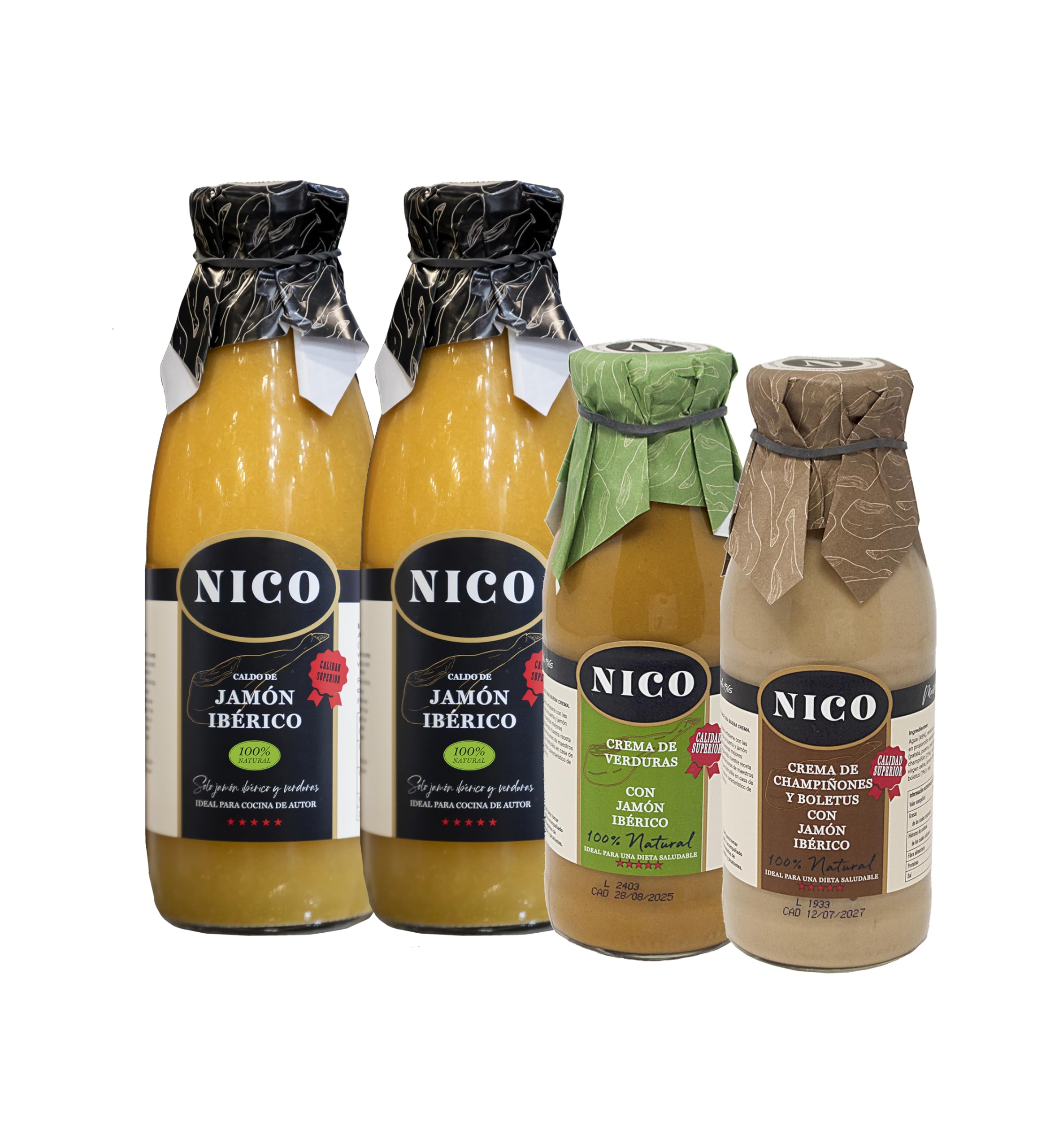 NICO JAMONES NICO - Pack of 2 units of broth 750 ml + 2 units of creams 500 ml