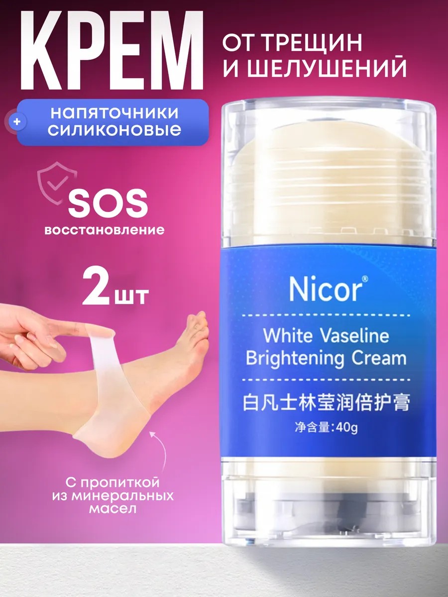 NICОR Крем от трещин и шелушений и силиконовые напяточники