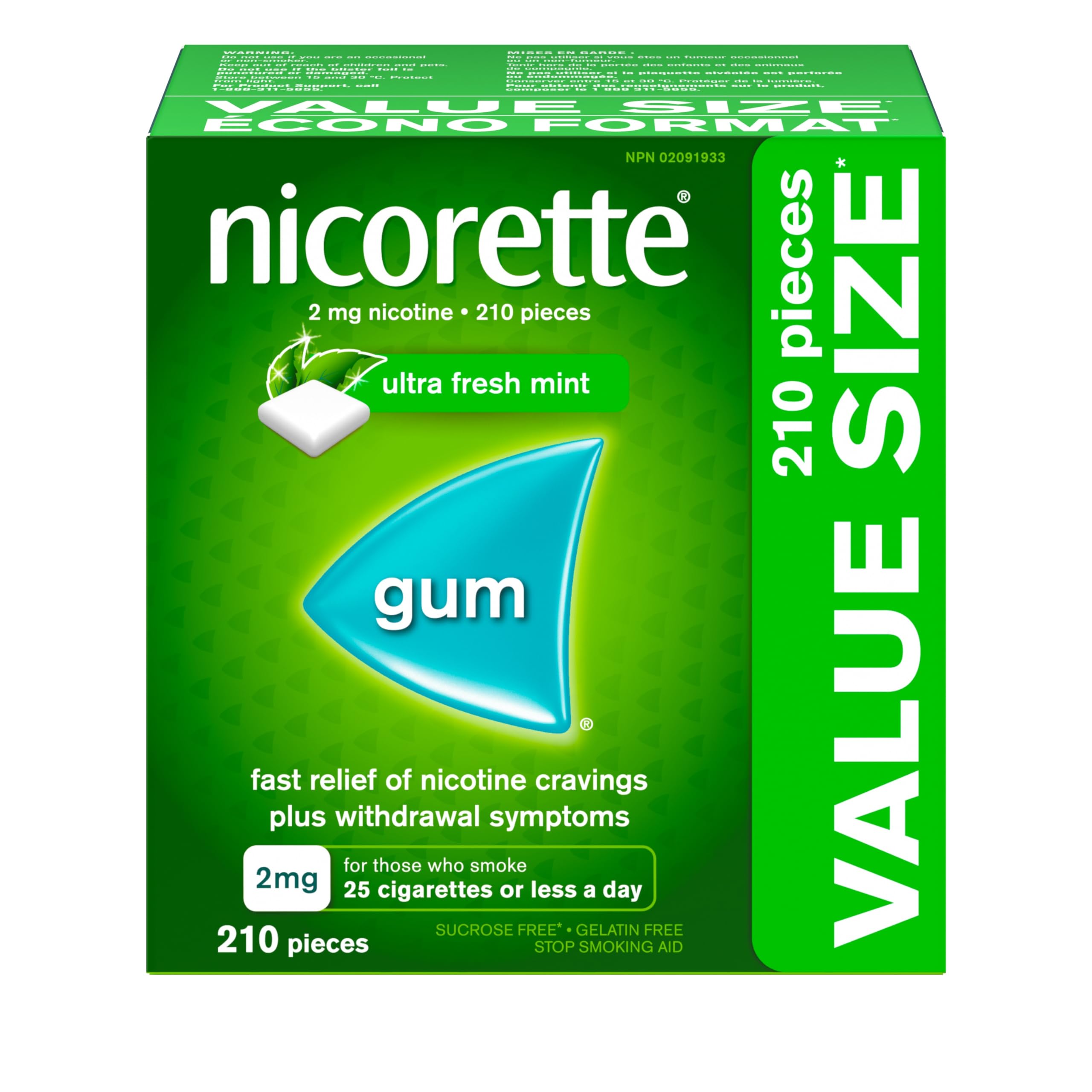 Great tasting ultra fresh mint flavour. A nicotine replacement therapy (NRT) and smoking cessation aid. 2 mg of nicotine per piece of gum. Doubles your chances of quitting versus willpower alone. Relieve your cravings to smoke plus withdrawal symptoms.