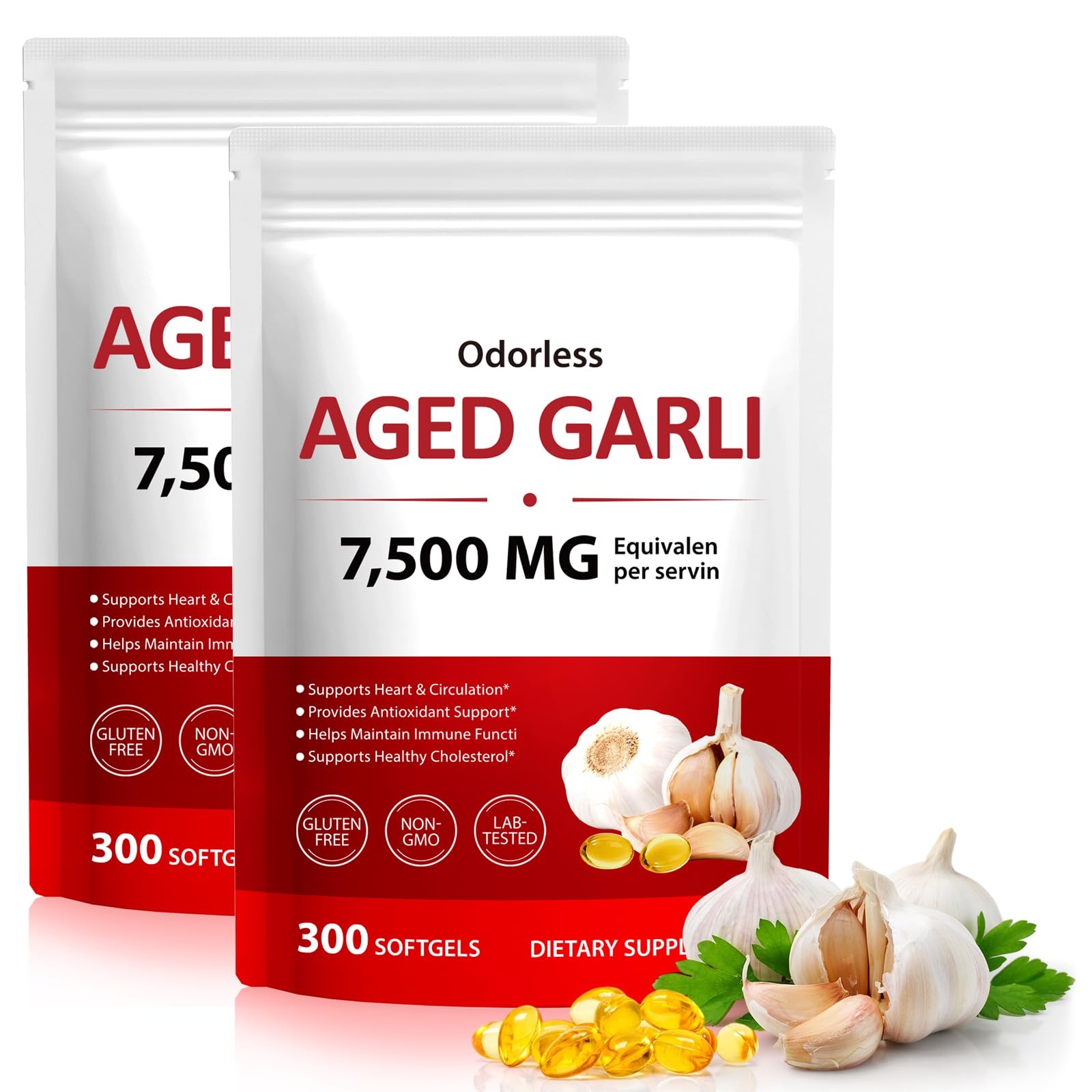 For Good Results: Take with a full glass of water and swallow whole chewing may release garlic taste, while whole ingestion keeps it (odor-free). Convenient Easy to Use : The 300-count bottle offers a convenient supply. In warm weather, softgels may stick together—this is normal and does not affect quality. Simply shake the bottle gently before use. A reliable, shelf-stable way to incorporate aged garlic into your wellness regimen. Pure, Premium Quality Ingredients : Crafted from authentic, organic garlic bulbs in GMP-certified facilities. Every batch is meticulously produced to ensure purity, potency, and consistency, providing a high-quality supplement you can trust for your daily routine. Supports Overall Wellness : Aged garlic is a natural source of antioxidants. Our specialized two-year aging and extraction process works to retain these beneficial compounds while minimizing harsh elements, resulting in a gentle, odor-free formula designed to complement your overall wellness routine. Odorless Gentle on Stomach : Experience the benefits of garlic without the strong odor or digestive discomfort. Our advanced formula is carefully processed to be gentle on the stomach and is free from gluten, soy, dairy, GMOs, and artificial additives, making it suitable for daily use. High-Potency Aged Garlic Extract : Each softgel delivers a potent 15:1 concentrate, equivalent to 7500mg of fresh garlic bulb. Our garlic undergoes a natural two-year aging process, which helps enhance the stability of its beneficial compounds and supports better absorption for consistent daily wellness support.