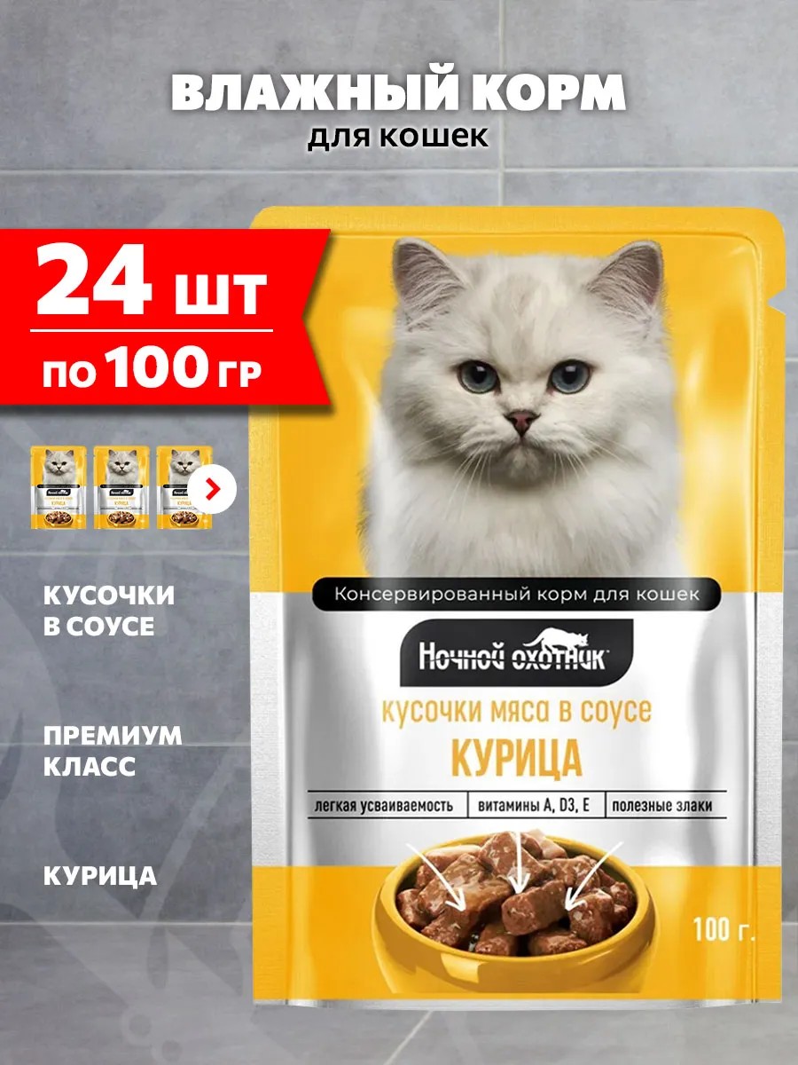 Кусочки в желе или в соусе для котят и кошек Ночной Охотник - это широкий выбор корма на любой вкус.