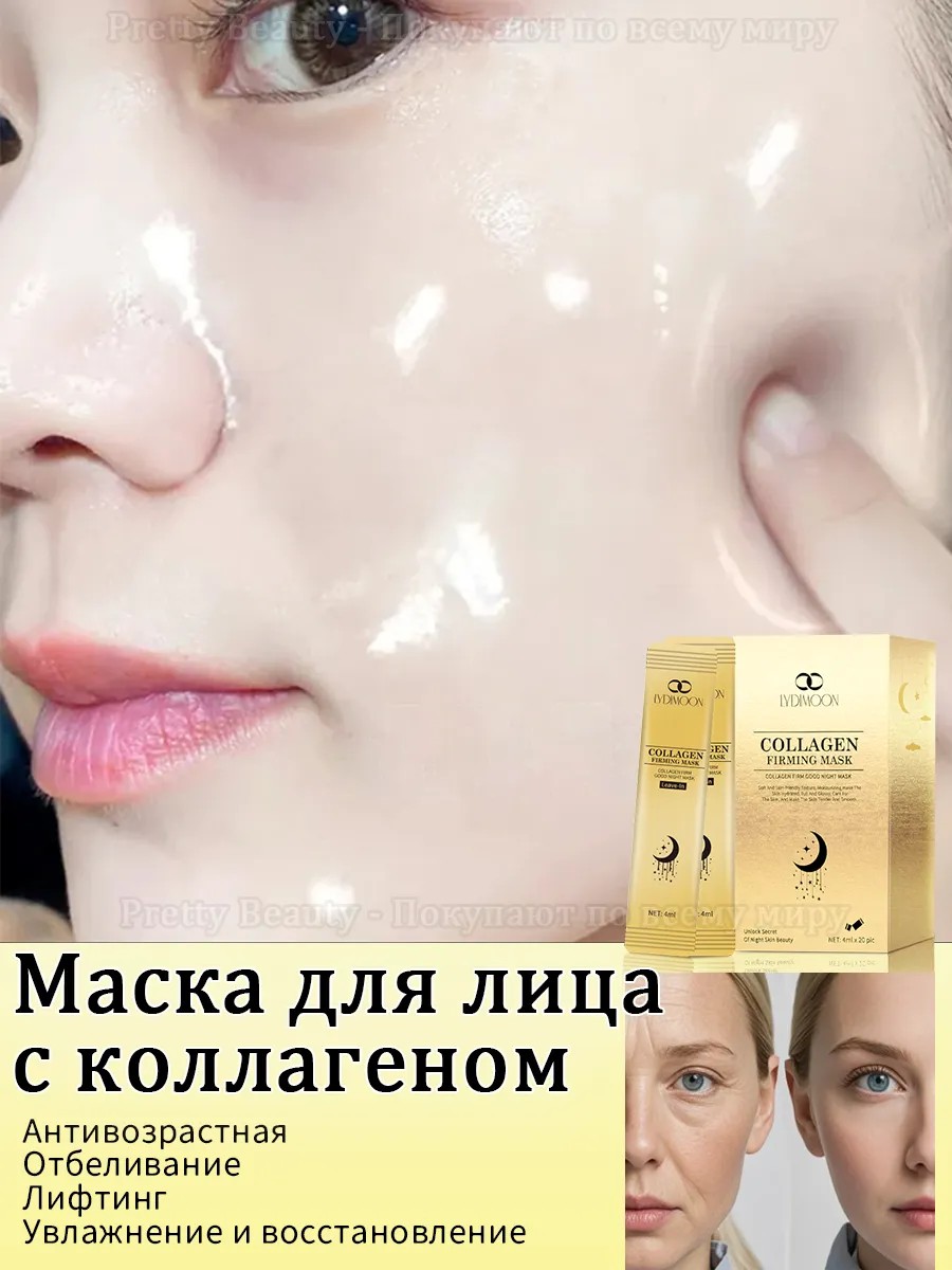 ночная маска, Маска для лица с коллагеном против морщин,увлажнение,питание кожи,4 мл х 20 штук