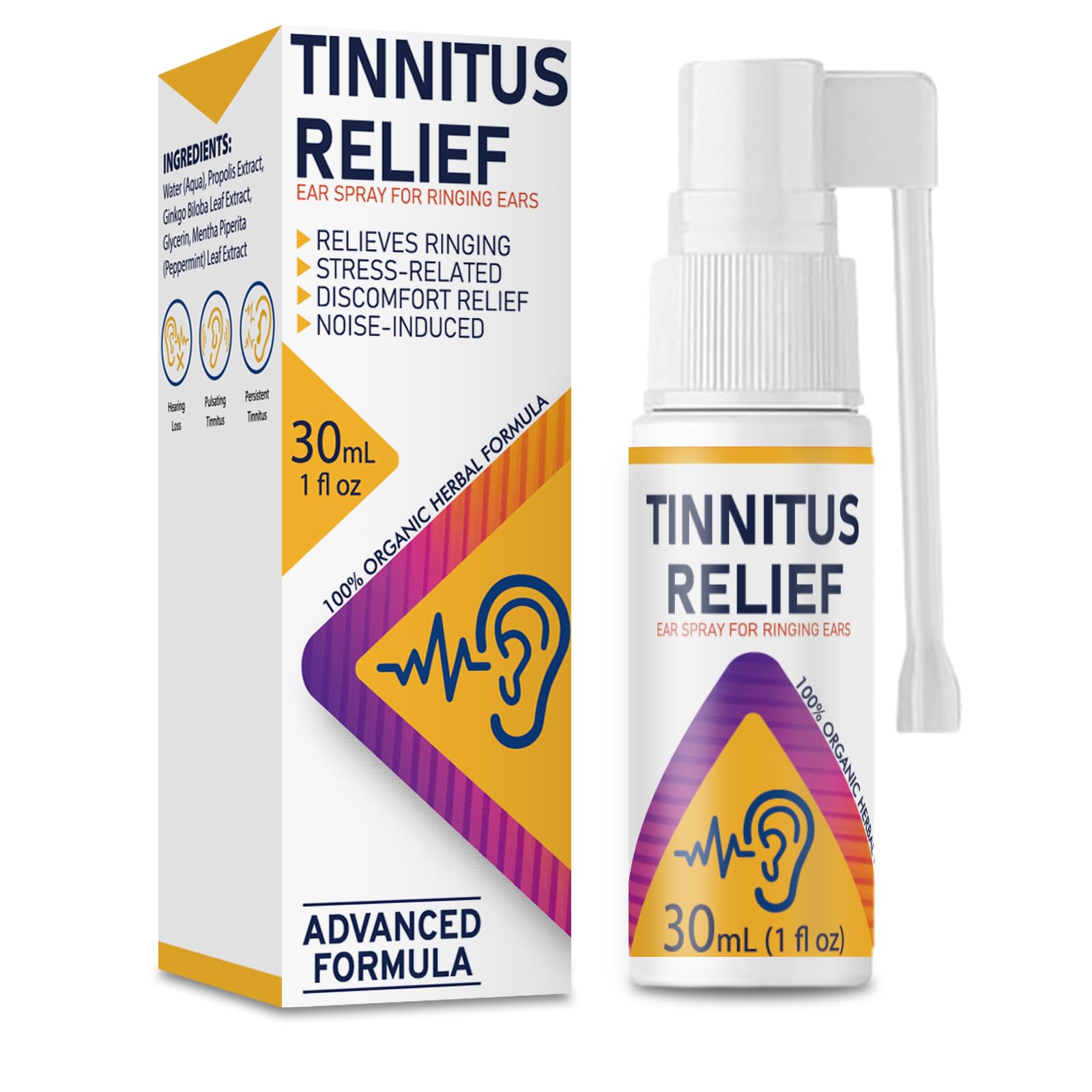 Easy-to-Use Nozzle: Specially designed mist tip lets you control dosage precisely carry the 30 ml tinnitus spray anywhere for instant relief when ear ringing strikes. Absorb Care: Clinically tested for fast absorption, the tinnitus relief spray soothes itch and discomfort inside the ear, giving your hearing comprehensive daily care. Relieve Focus: By eg ringing in the ears, our tinnitus relief spray cuts down ear noise interference, helping you concentrate at work and lowering the risk of memory lapses. Gentle Trustworthy: This tinnitus treatment spray delivers natural herbal actives deep into the ear skin, providing gentle yet powerful relief without harsh chemicals. Stop the Ringing Now! Our Tinnitus Relief Spray can effectively reduce all kinds of tinnitus—buzzing, clicking, hissing and more—so you can finally enjoy peace and quiet.