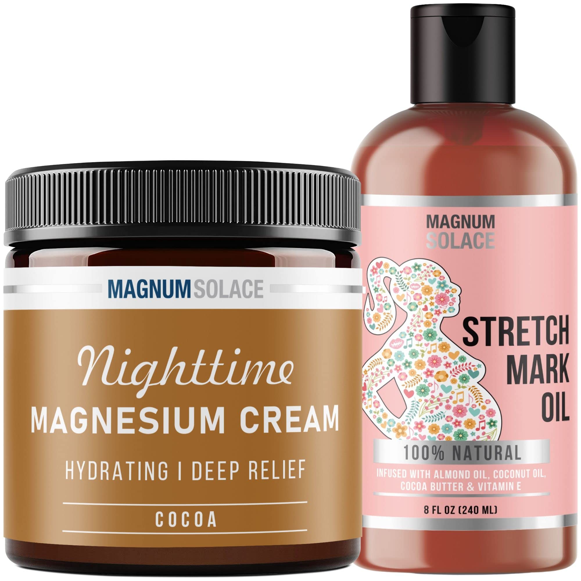 Nighttime Magnesium Cream and Stretch Mark Oil Cocoa - 2 Pack Bundle