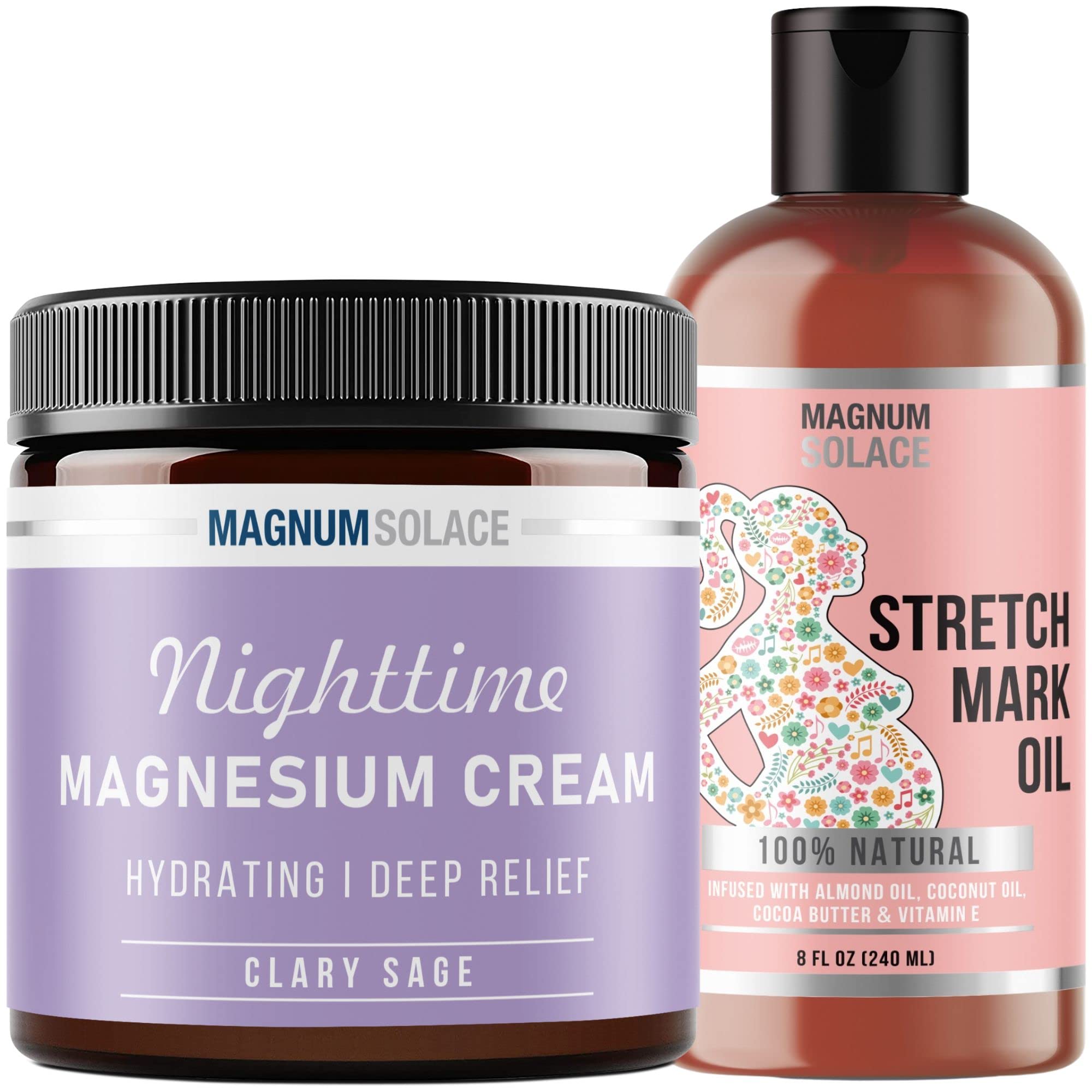 Nighttime Magnesium Cream (Clary Sage) and Stretch Mark Oil (Cocoa) - 2 Pack Bundle.