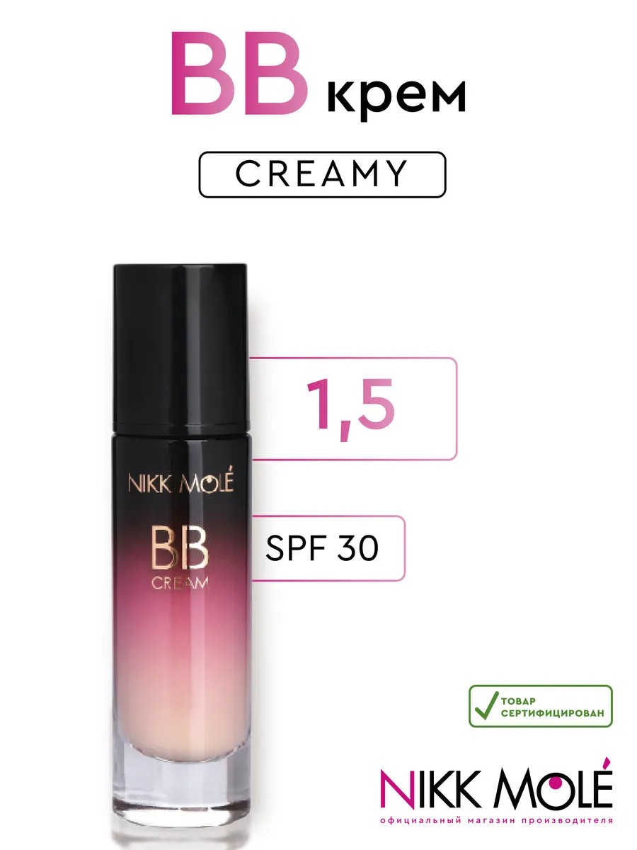 The weightless texture of this BB cream allows for flawless coverage. All makeup and women's cosmetics will help you look perfect every day. This BB cream nourishes and hydrates your skin. It contains collagen and hyaluronic acid, which moisturize and eliminate dryness and flaking. Grape stimulates cell regeneration and collagen synthesis. Jojoba improves skin elasticity and contains collagen for the face. This BB cream covers all skin imperfections with both light coverage and a thick application that's completely undetectable and looks incredibly natural. Suitable for all skin types. SPF 30 provides additional sun protection. Apply an even layer to your face. For a more sheer effect and to target areas with enlarged pores, use a sponge. For a denser application, use a makeup brush. Search for: Face cosmetics, face cream with SPF, makeup, foundation, foundation, professional cosmetics, Nikk Mole, sunscreen, BB cream, face cosmetics, foundation. An even skin tone and facial care will become your faithful companions for creating a flawless look. Face cream will provide hydration and protection, and professional cosmetics will highlight your best features. Antioxidants and natural ingredients will provide additional protection and radiance to your skin. Look for comfort and smoothness with every application, providing your skin with the necessary nourishment and refreshing effect.